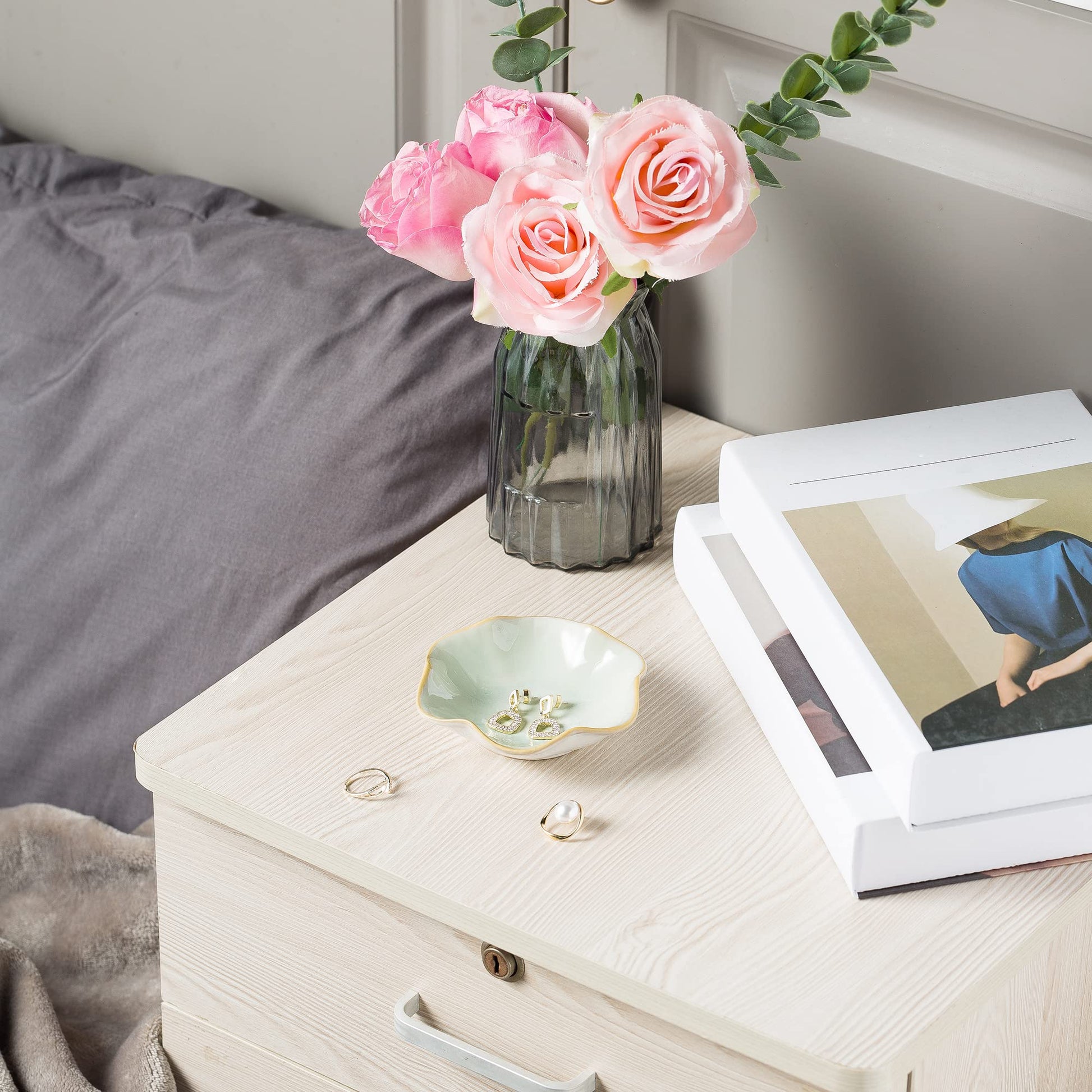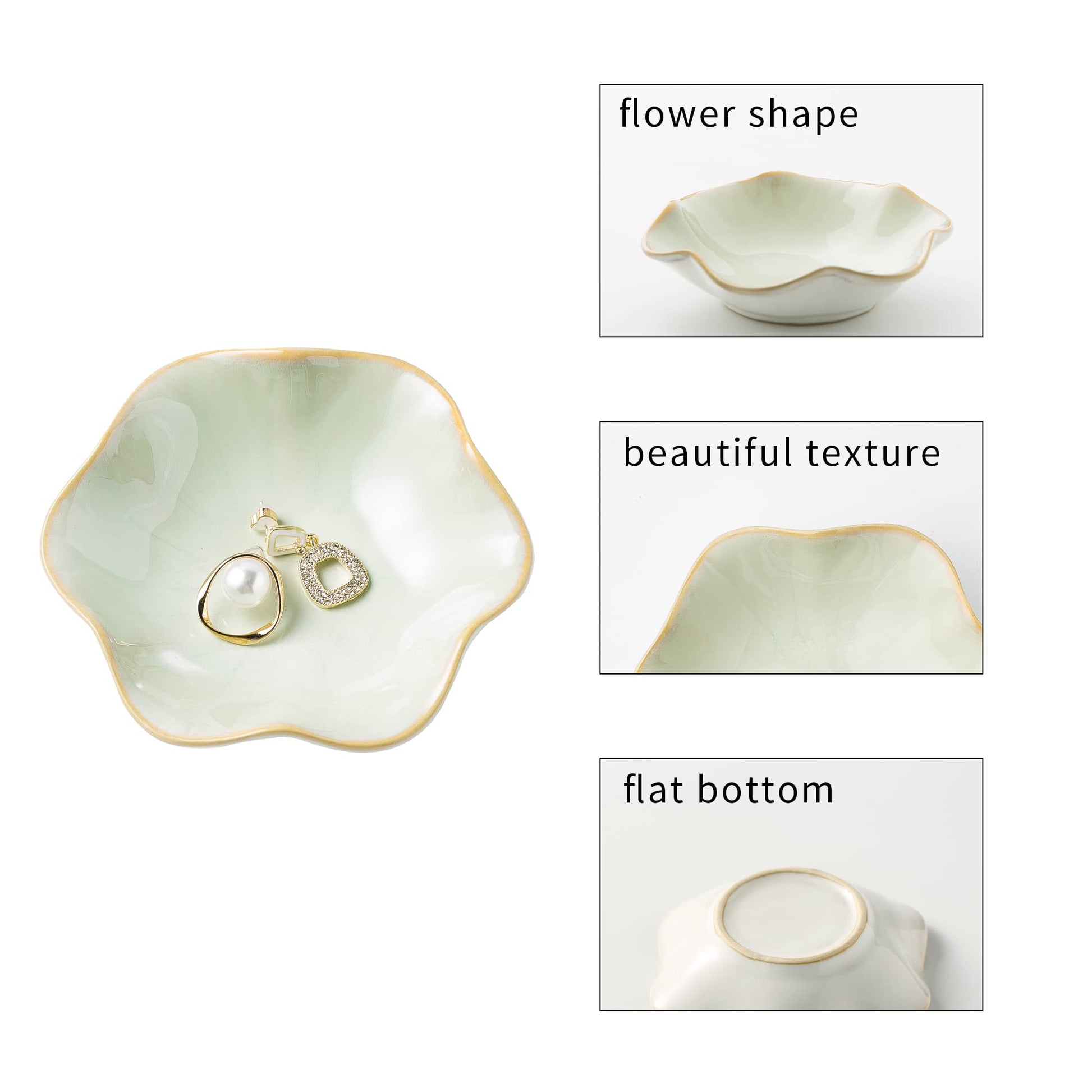 Jewelry Dish Tray, Ring Dish, Ceramic Trinket Tray, Key Bowl, Decorative Plate, for Friends Sisters Daughter Mother(Light Green)