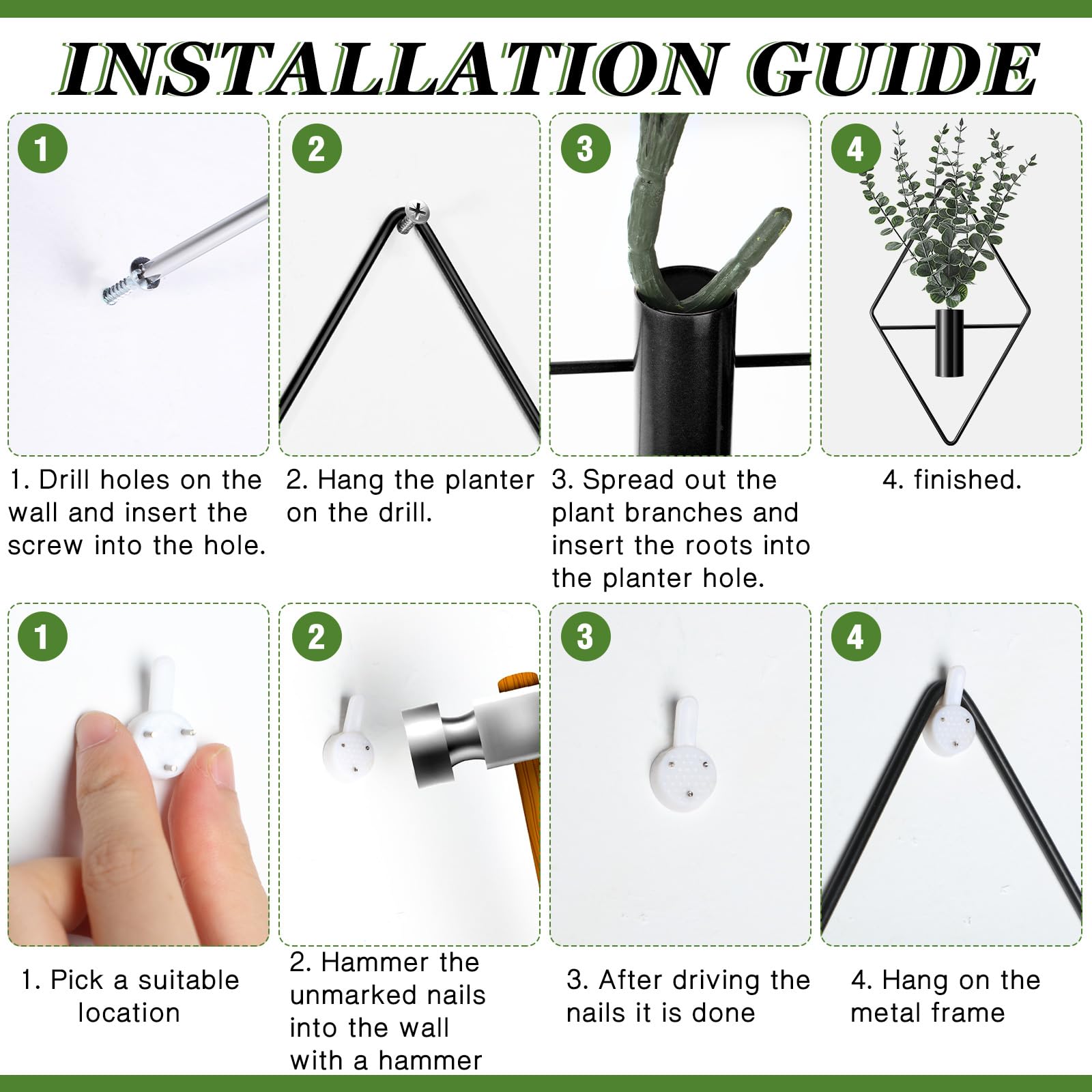 • Simple and Generous: the geometric wall hanging vase is designed in triangle and rhombus shape, coordinate with classic black color, the collision of metal iron and flower art, its simple design let it look elegant and generous, and is suitable for a variety of decoration styles, such as modern style, minimalist style, rustic style and more