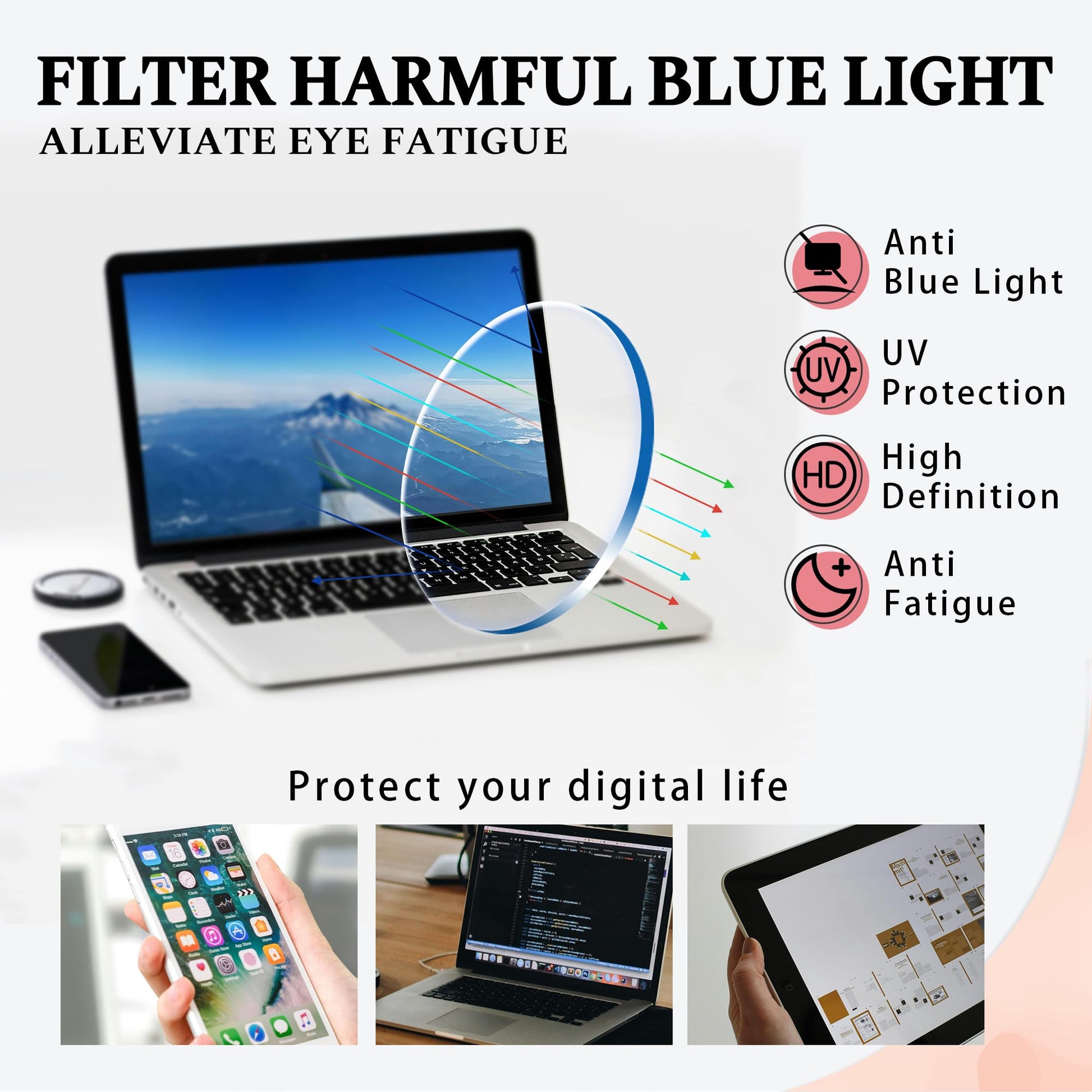 • REDUCE EYE STRAIN & SLEEP BETTER - Enjoy your digital time, NO worry about eye fatigue, blurred vision and headache, they are perfect for those who work long hours on their computer, tablet, gaming device, phone, or TV.