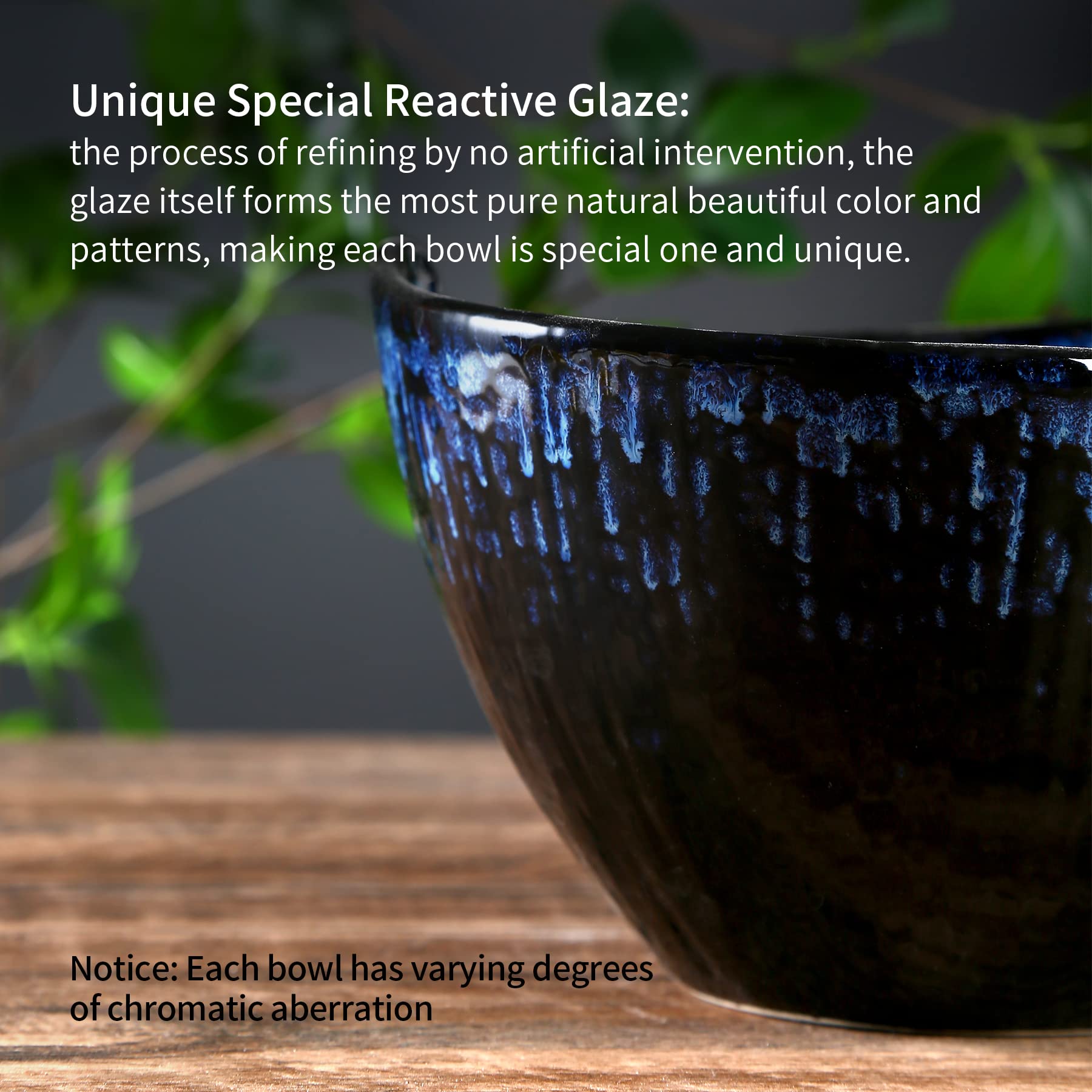 • 【 Unique Ramen Bowl set 】are made of high quality porcelain, with special Reactive glaze, the process of refining by no artificial intervention, the glaze itself forms the most pure natural beautiful color and patterns, making each bowl is special one and unique.
