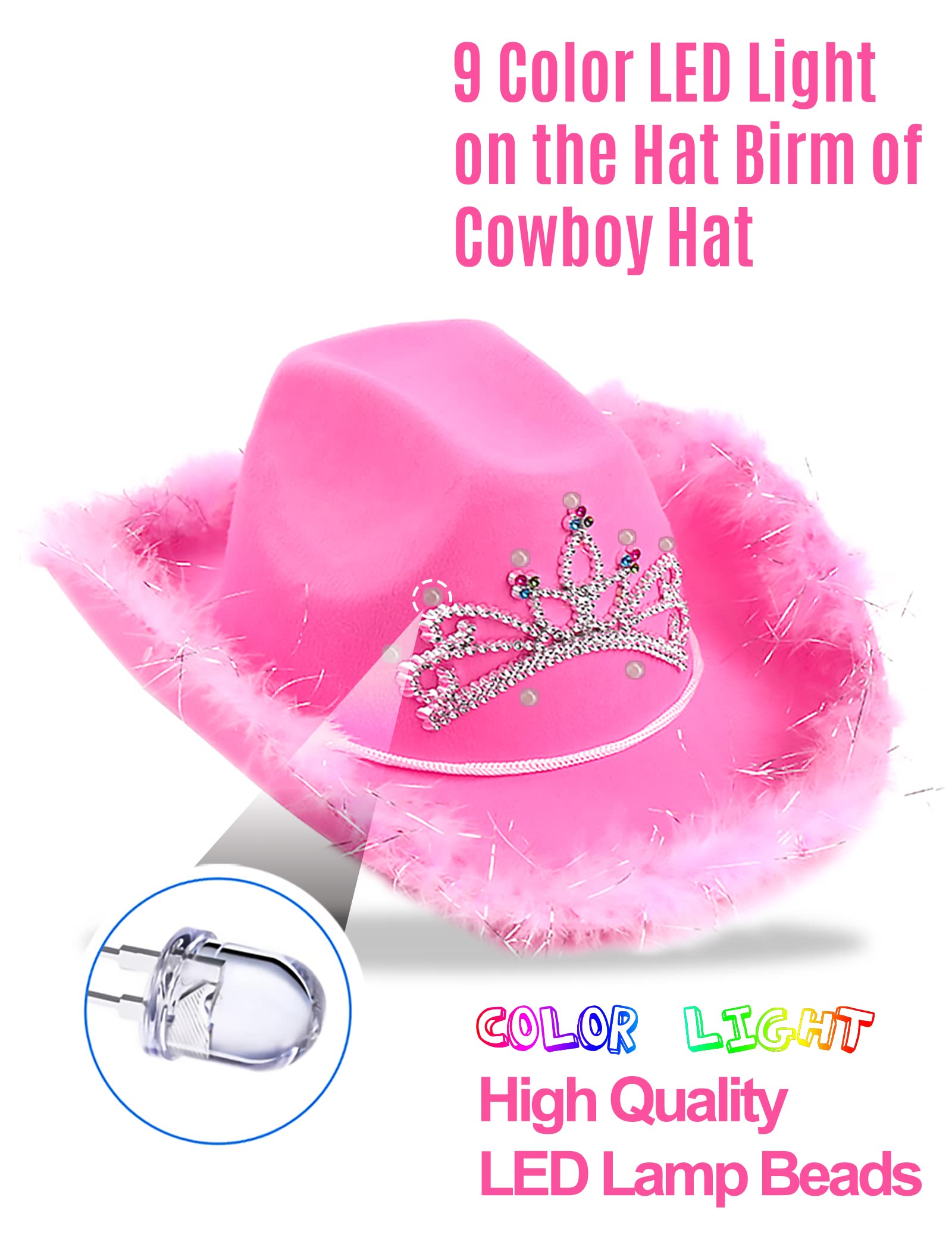 • THREE WAYS TO SHINE IN THE COWGIRL HAT: the shiny sequin cowboy hat lights have three different ways, including blink, fast flash, and steady lights, these interesting lights will make you more dazzling in the party