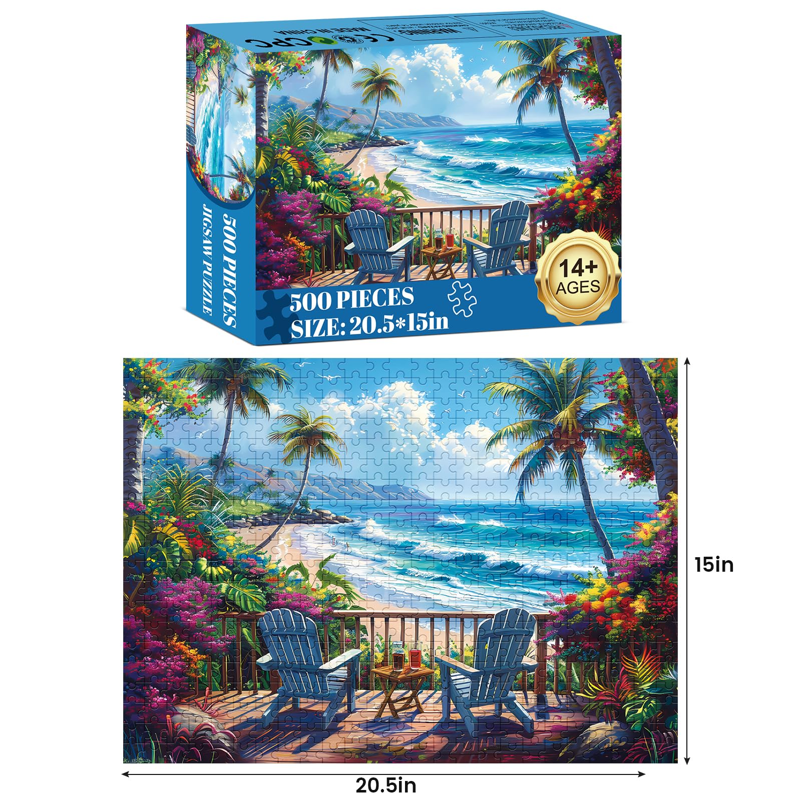 • Seaside Holiday Vibes: This 500-piece jigsaw puzzle captures the essence of a seaside holiday, offering a serene and immersive experience as you piece together the coastal scenery