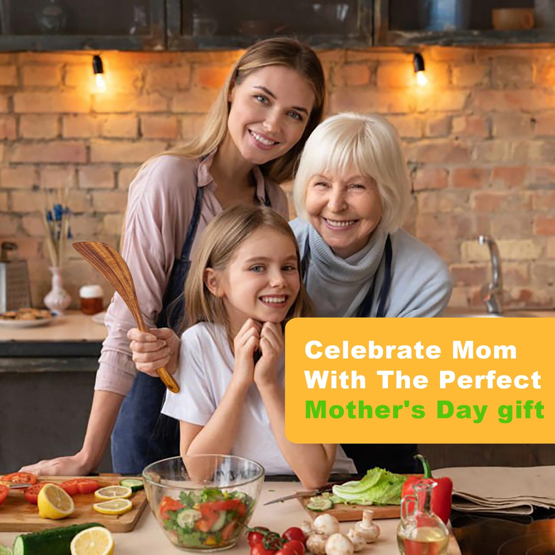Jilla-hla Wooden Spatula Nonstick Turner Acacia Wood, Right Long Handle Flat Frying Spatulas Handmade for Mother Wife Grandma Her Kitchen Gift, Ideal Cookware Utensils for Cooking Eggs, Fish, Pancakes