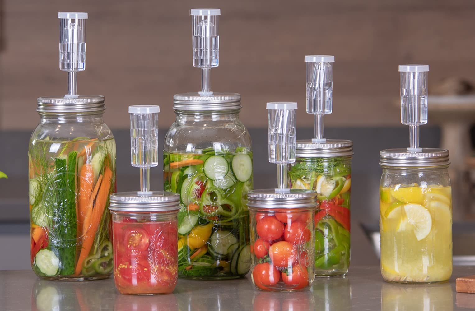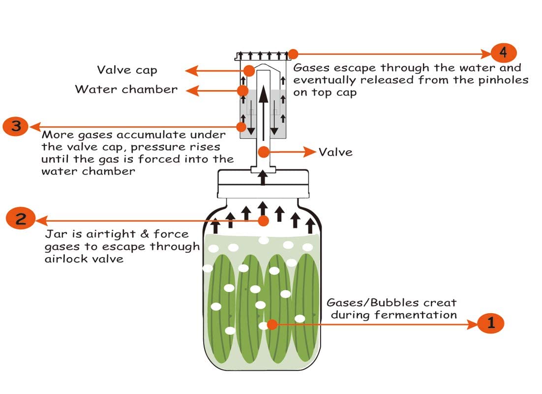• FERMENTING KIT INCLUDES: 4 stainless steel wide mouth fermentation lids with seals; 4 silicone grommets, 4 BPA-FREE water airlocks