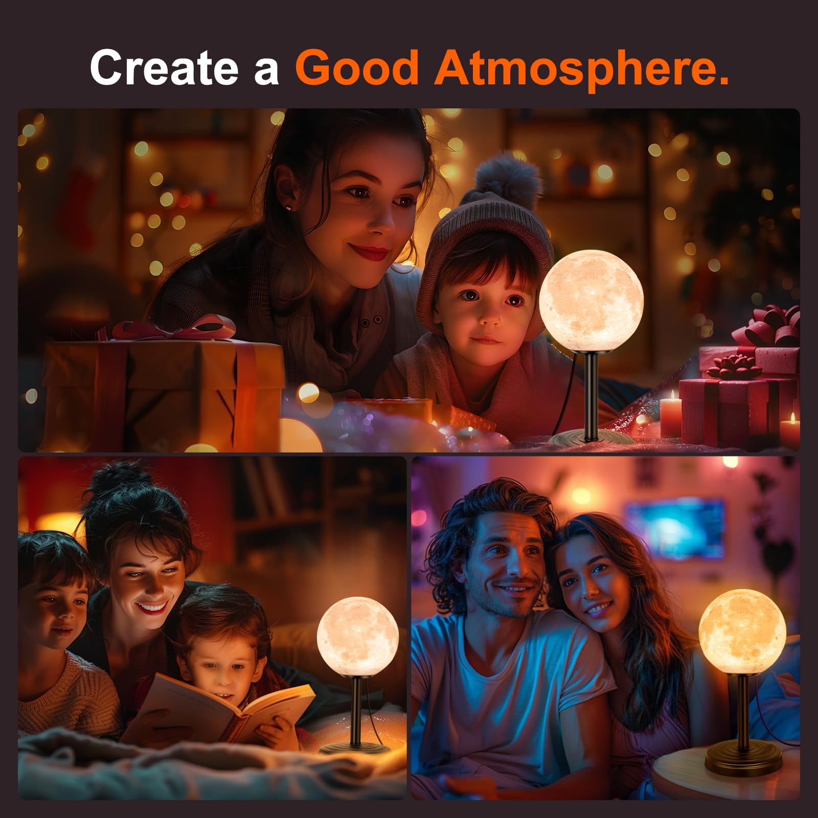 • 3D Moon Lamp Bedside Table Lamp for Bedroom - Adopts advanced 3D printing technology and a simple design night light base, with its unique appearance, it shows the best appeal in simplicity, exuding A minimalist lamp with a modern industrial vibe, perfect for decorating anywhere in your house. An ideal USB nightstand lamp for bedroom, study room, living room,guest room, boys' and girls' kids rooms, desk, office and more