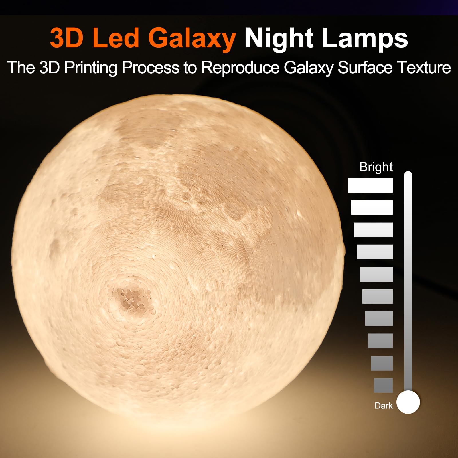 • 25 Dimmable Modes: - The LED bedroom lamp can easily adjust 5 brightness and 5 color tempers (3200K-6500K), so that you can adapt to various usage scenarios: work Or read bright task light, medium light and low light Take advantage of the light to relax and bring you a warm and comfortable atmosphere.Don't miss the opportunity to bring this practical 3D moon bedroom lamp home!
