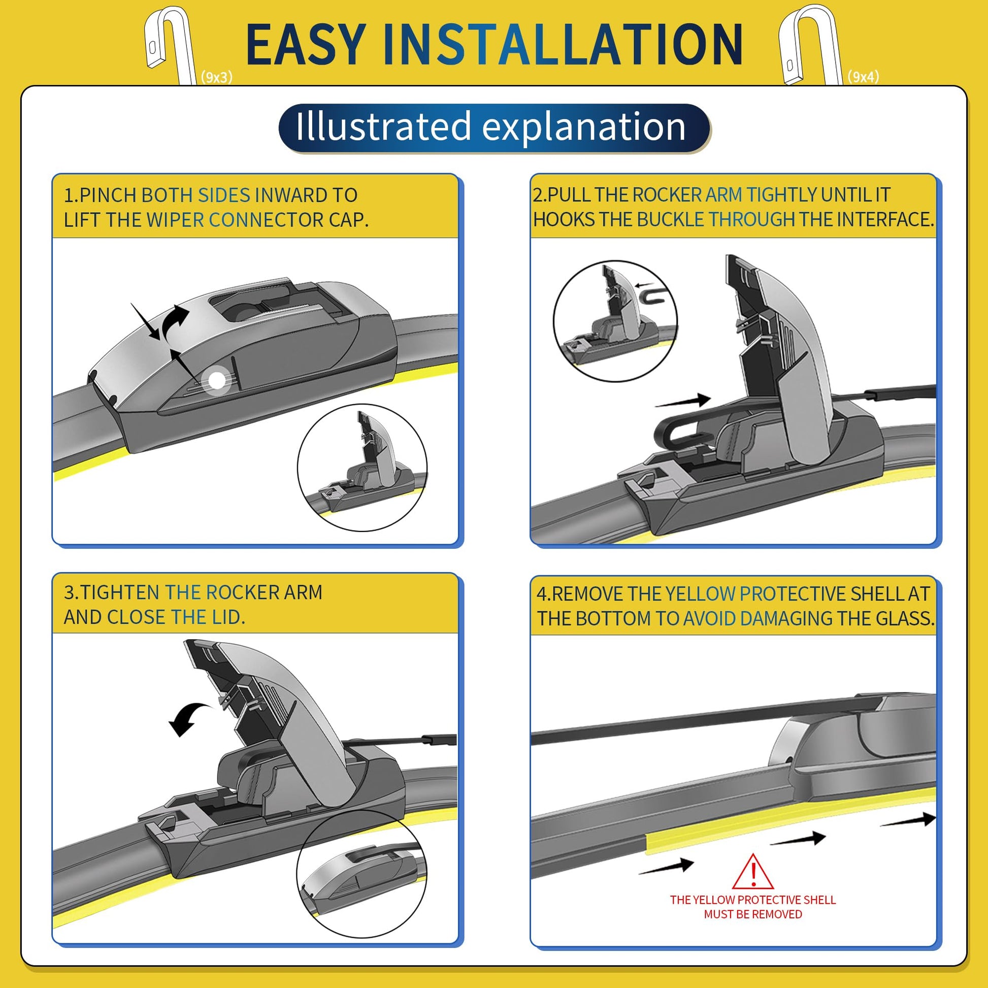 • 【PREMIUM WIPER BLADES】: High quality wiper, improve driving visibility and safety, to achieve smooth, clean wiping effect.