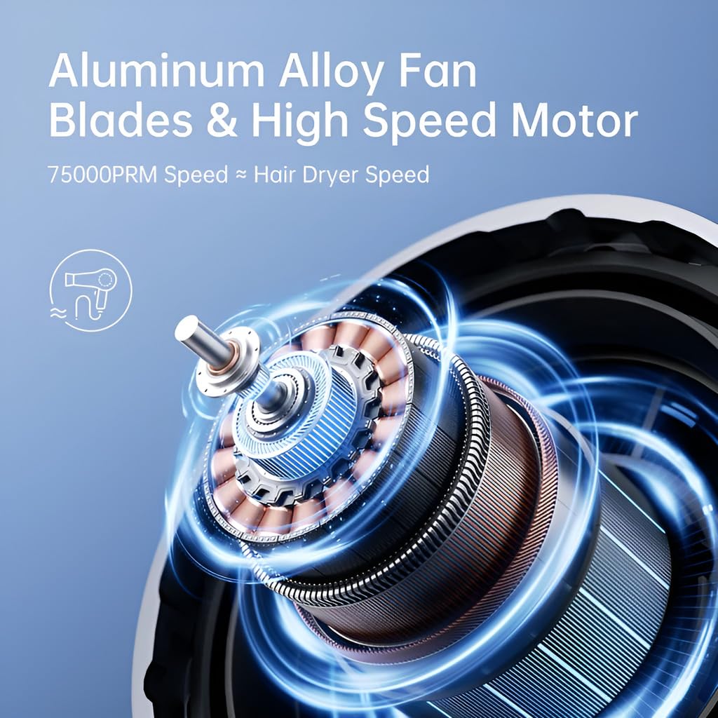 • Customized Wind Speed By Yourself: Travel fan introduces a high-speed hair dryer similar motor, uses an infinity roller to adjust wind speed from 1-100 gears, meets your all needs. Turbocharged wind guide system, strong wind gathering, high-speed airflow gushing out, bringing incredible cooling experience, cooling speed increased by more than 3 times, great gift choice for travel