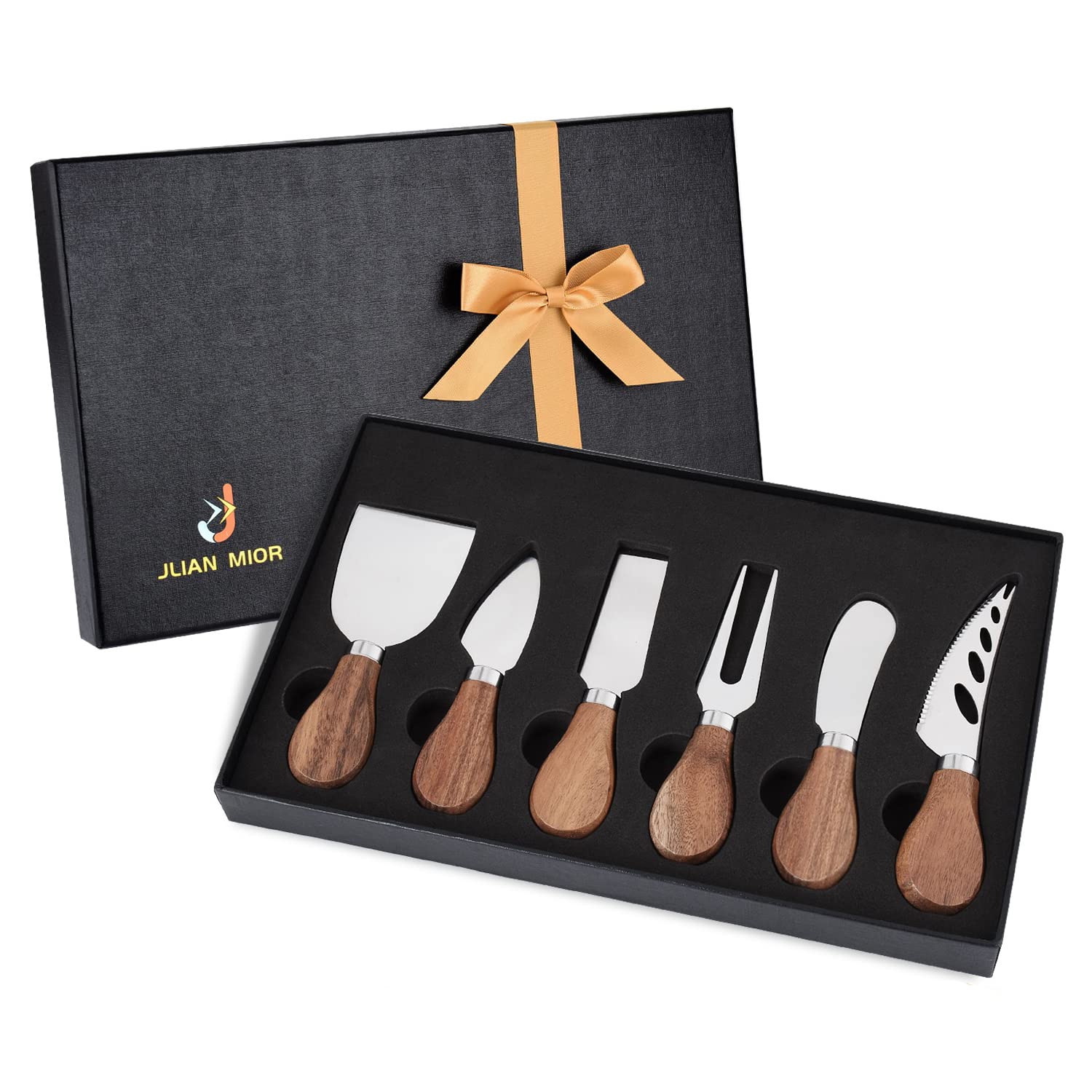 JLIAN MIOR Exquisite 6-Piece Cheese Knives Set, Stainless Steel Cheese Knife Set Collection (Acacia Wood Handle)