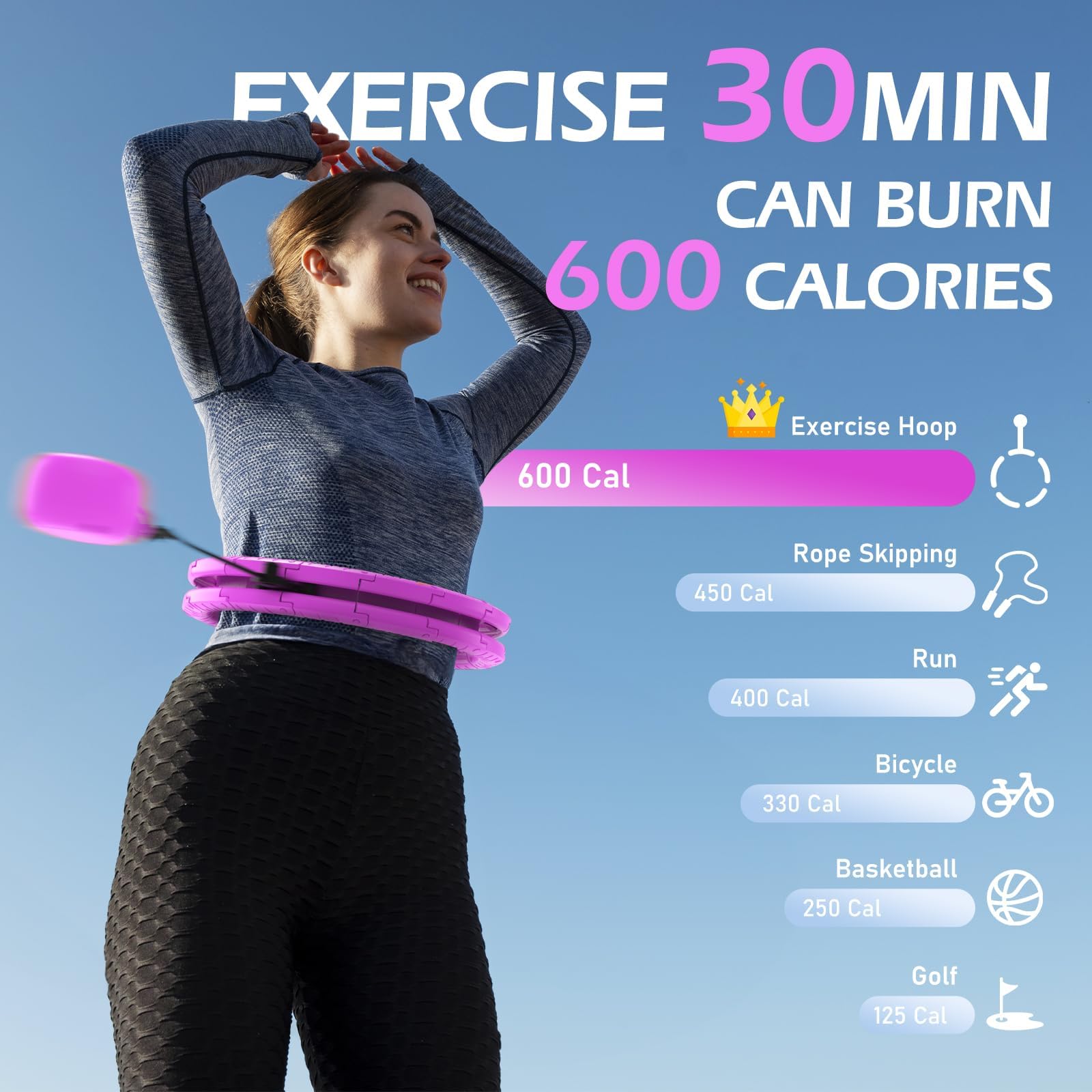 JLoibao Weighted Hula Circle with 32 Links(66 Inch), Sweet Weight Ball, for Adults Weight Loss, Infinity Fitness Hoop Plus Size, for Women Smart Exercise Equipment