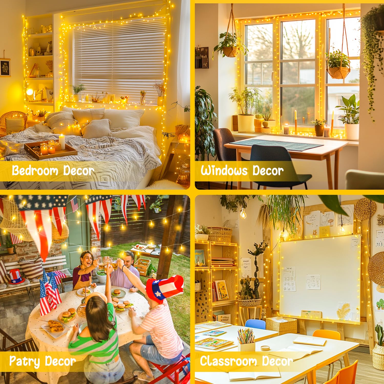 • Captivating Decorative Lights & Wedding Lights: Decorating your home and room with a warming glow, adorning your room with the indoor string lights for bedroom, transforming it into a sweet cozy world. The warm white Christmas lights can be used as wedding decoration string lights. They can be hung along pathways to guide guests through the celebration. Use wedding string lights to highlight the wedding arch, table decor, or wedding backdrop, creating a wow visual effect