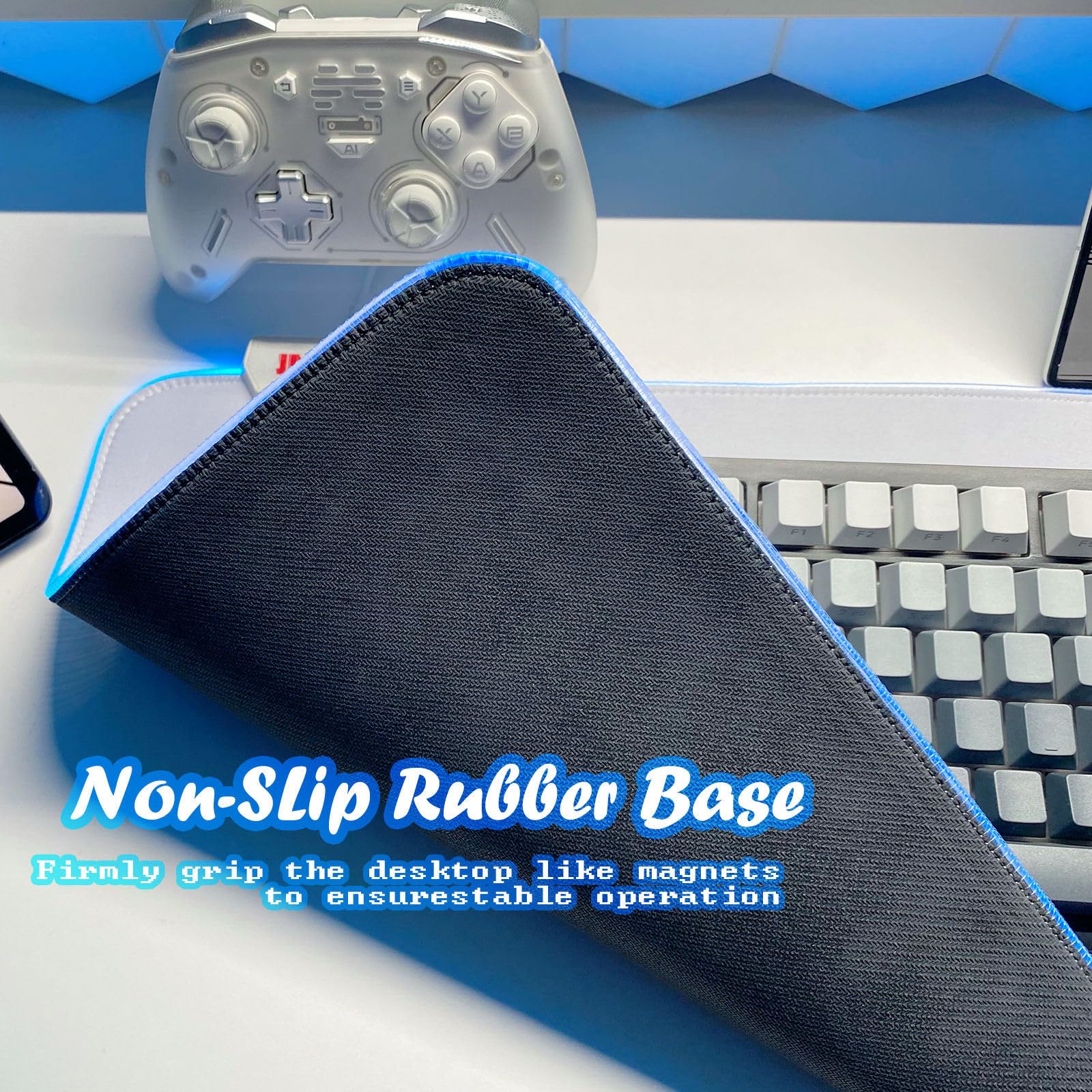 JMIYAV White Gaming Mouse Pad RGB Mousepad Non-Slip Rubber Base Extra Large Cool XL XXL Computer Desk Pad Gaming Accessories LED Light Up Extended Big Mouse Pad for Gamer (31.5x12In) Upgrade