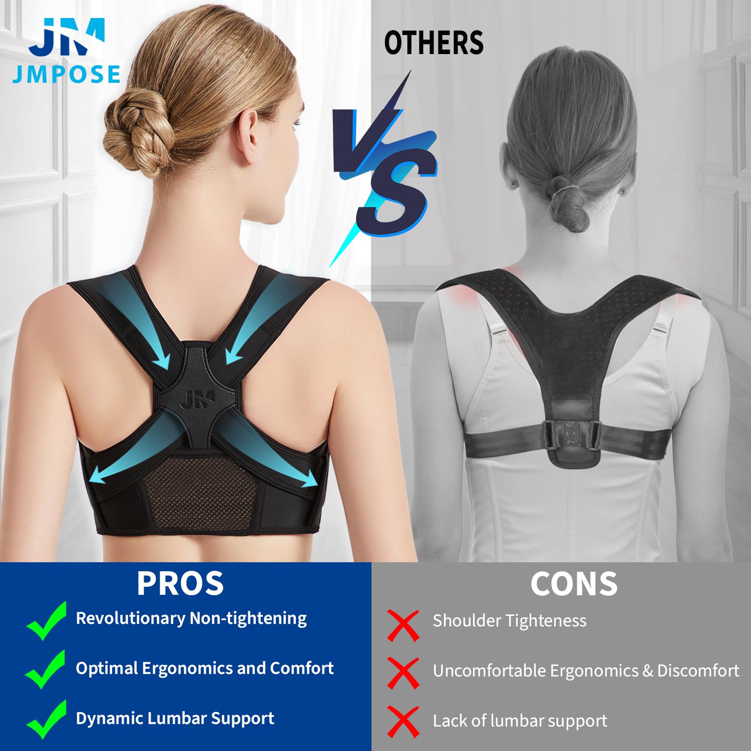 JMPOSE Posture Corrector for Back Support: Adjustable Shoulder Posture Brace for Men and Women (Black, Small/M)