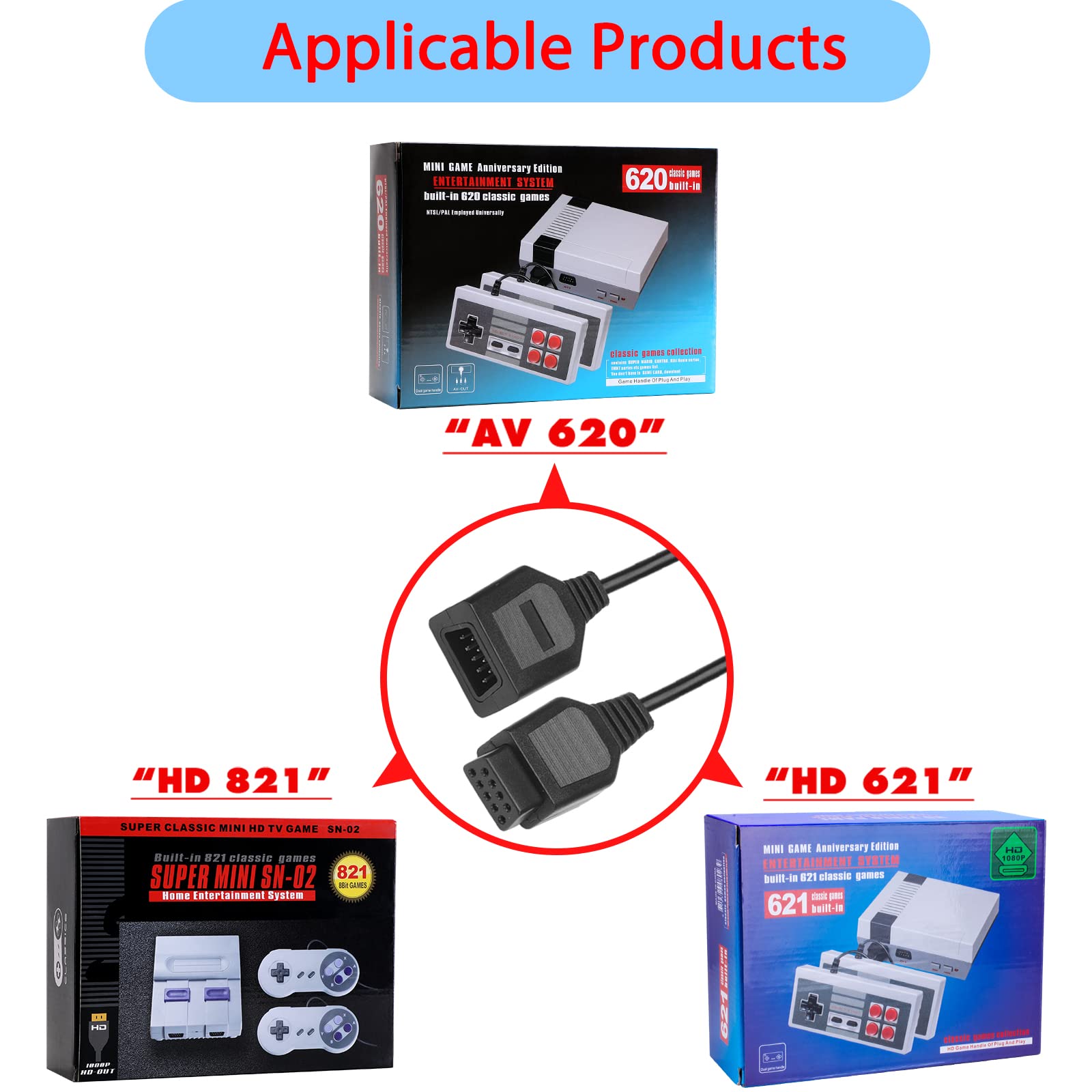 Details: describe: 1. The controller extension cable is durable and will withstand many hours of play. 2. The controller extension cable is easy to install, plug and play, and no additional driver is required. 3. The JoFong cable extension is 5.8 feet long, allowing you to play comfortably on the couch, giving you a better gaming experience. 4. The extension cable interface of the game console controller adopts a 9-pin interface, please check whether it matches your game console before purchasing. 5. The controller extension cable is only suitable for AV 620, HD 621 HD 821 retro classic game console controller handle, not suitable for NES classic controller handle. Quality assurance: Like all other premium products, this controller extension cable is also protected by our quality guarantee. Get our retro classic game maker extension cable and enjoy smooth and convenient gaming anytime, anywhere. If you have any quality problems, please feel free to contact us. Your satisfaction is our greatest guarantee.