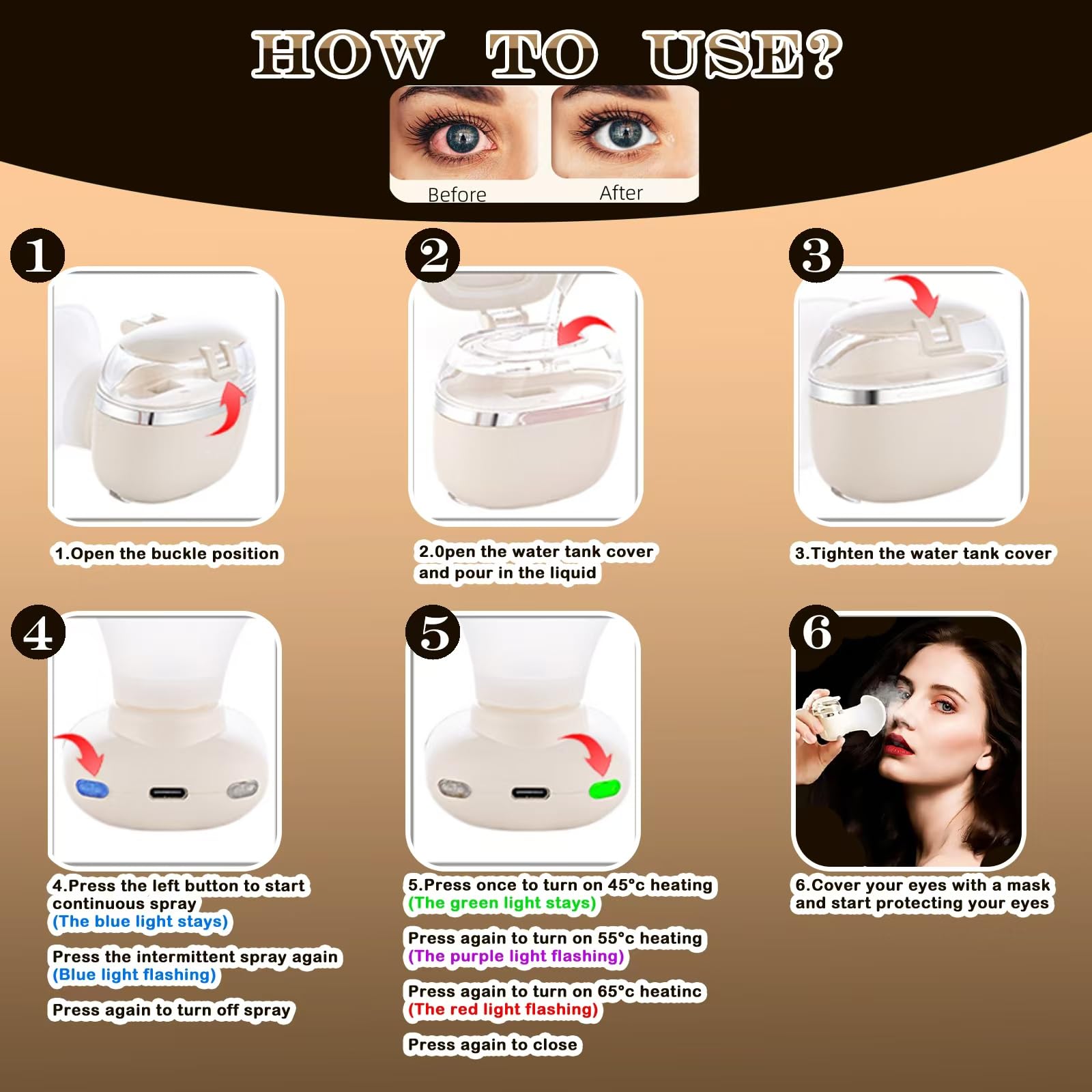 • 【Cold and hot dual application function】Eye spray it can provide you with heat, linear slow warming, 30 seconds preheating, rejecting the rapid heat causing eye discomfort, more can relieve eye fatigue, relieve dry eyes and eye bags, moisturize the skin.