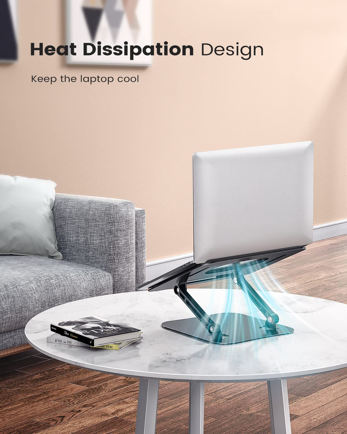 • Stable & Durable: The computer stand is made of thickened aluminum alloy, which makes the laptop stand sturdier and less wobbly. Metal heat conduction alloy and ventilation hollow design keep your computer cool and prevent overheating