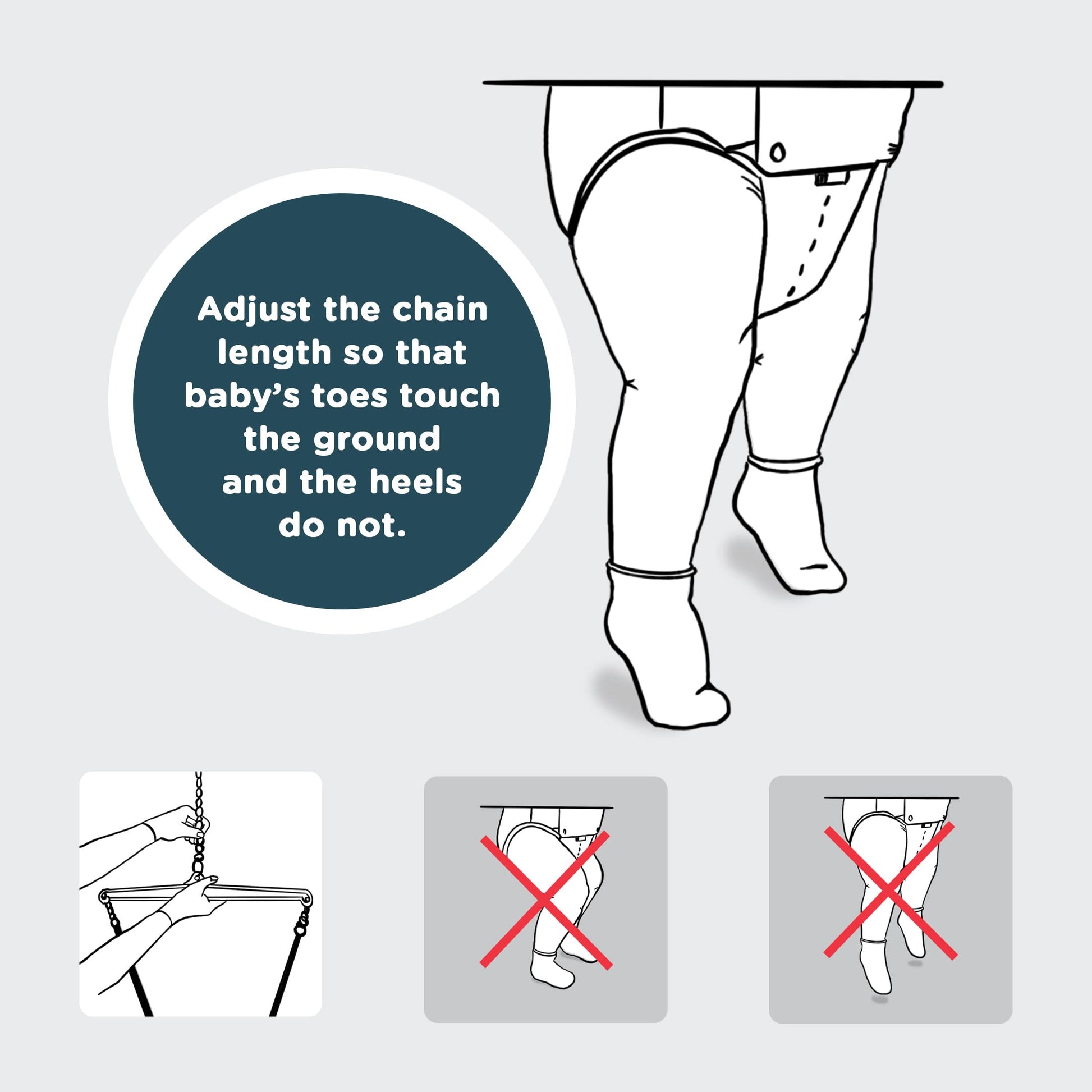 Details: Looking for a trusted way to help your baby stay active and develop safely? The Jolly Jumper CLASSIC Baby Jumper with Stand gives your little one spring-loaded motion that supports balance, coordination, and early muscle strength—while keeping them happily jumping. It’s the perfect alternative to bulky activity centers or swings. Parents love how much babies enjoy it—and how it helps release energy before naps or bedtime. The scientifically designed saddle-style seat supports proper posture, and the adjustable height grows with your baby up to approximately 28 lbs or until walking age. With the included free-standing steel frame, no doorway is required. Setup takes minutes with no tools, and the frame folds flat for compact storage or travel. Safe for indoor or outdoor use, it fits easily into busy family routines. Used by generations of parents since 1948, this CLASSIC Baby Jumper with Stand offers simplicity, comfort, and joy—designed for safe, rhythmic motion that babies love. Q: What is the recommended age and weight for this jumper? A: Approximately 3 months to walking age, up to 28 lbs, or when your baby can hold their head up unassisted. Q: Does it require a doorway? A: No. This model includes a sturdy free-standing frame—safe for use indoors or outdoors. Q: Can it be stored flat? A: Yes. The steel stand folds flat for easy storage and portability. Q: What makes this better than other jumpers or activity centers? A: It’s simple, proven, space-saving, and built to let your baby jump freely—without overstimulation or bulky setup.