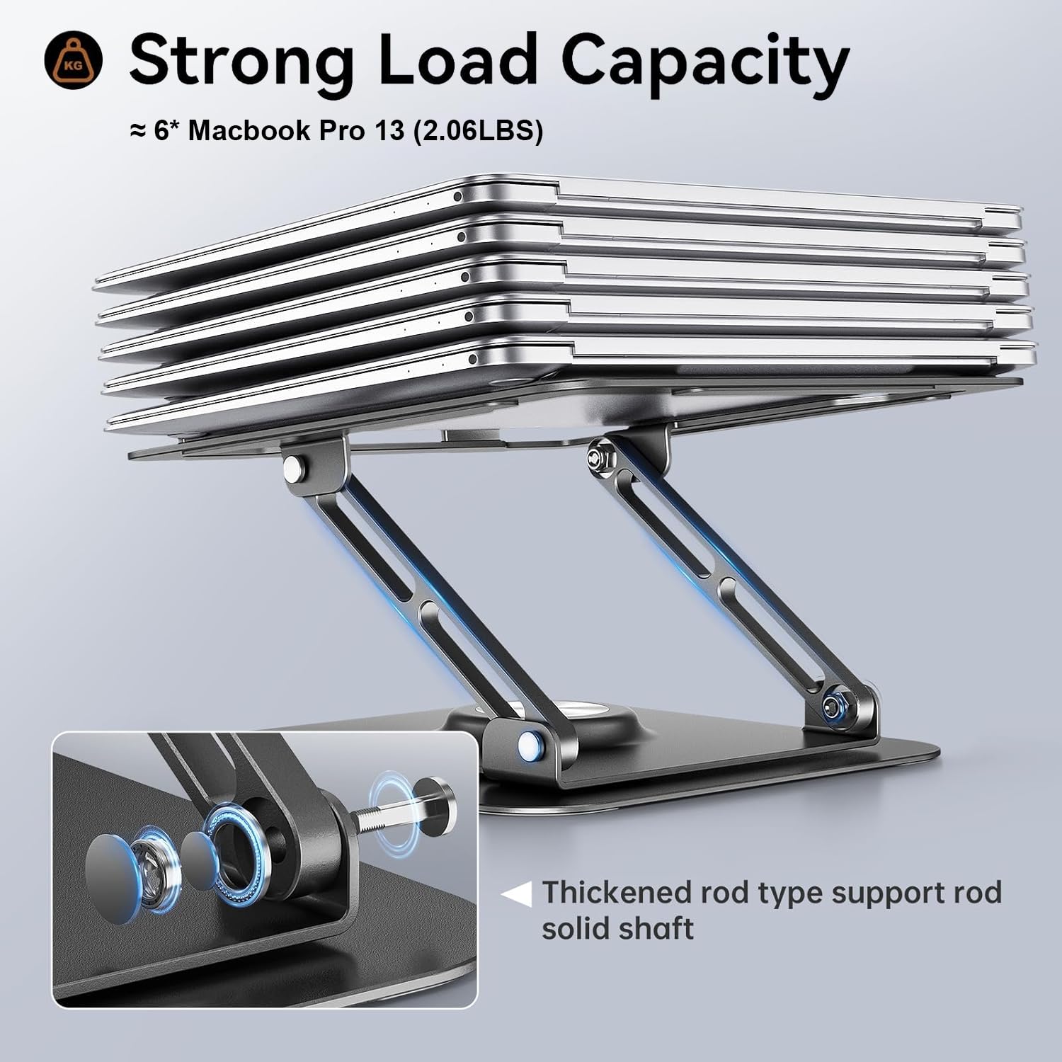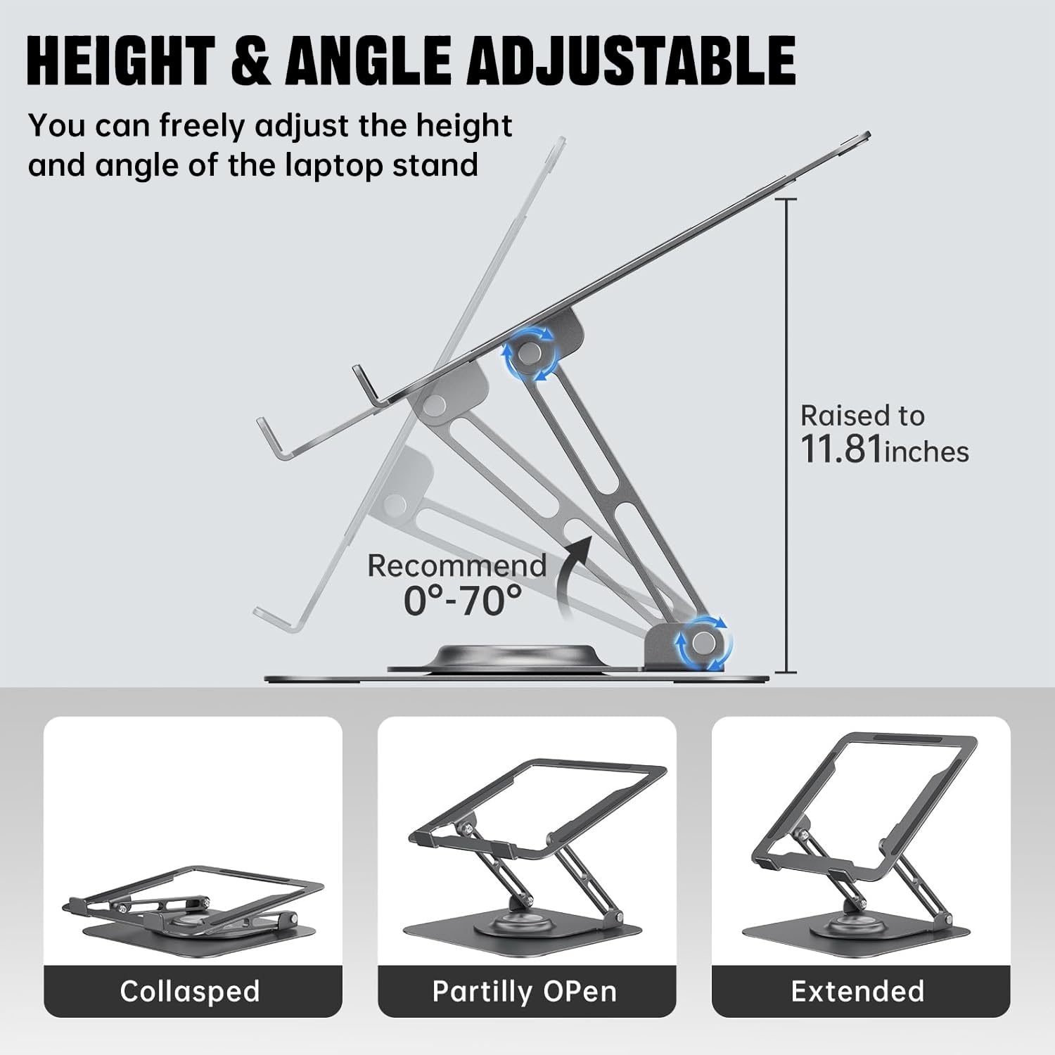 JOYEKY Laptop Stand for Desk, Adjustable Computer Stand with 360° Rotating Base, Ergonomic Laptop Riser for Collaborative Work, Foldable & Portable Laptop Stand, fits for All 10-16" Laptops