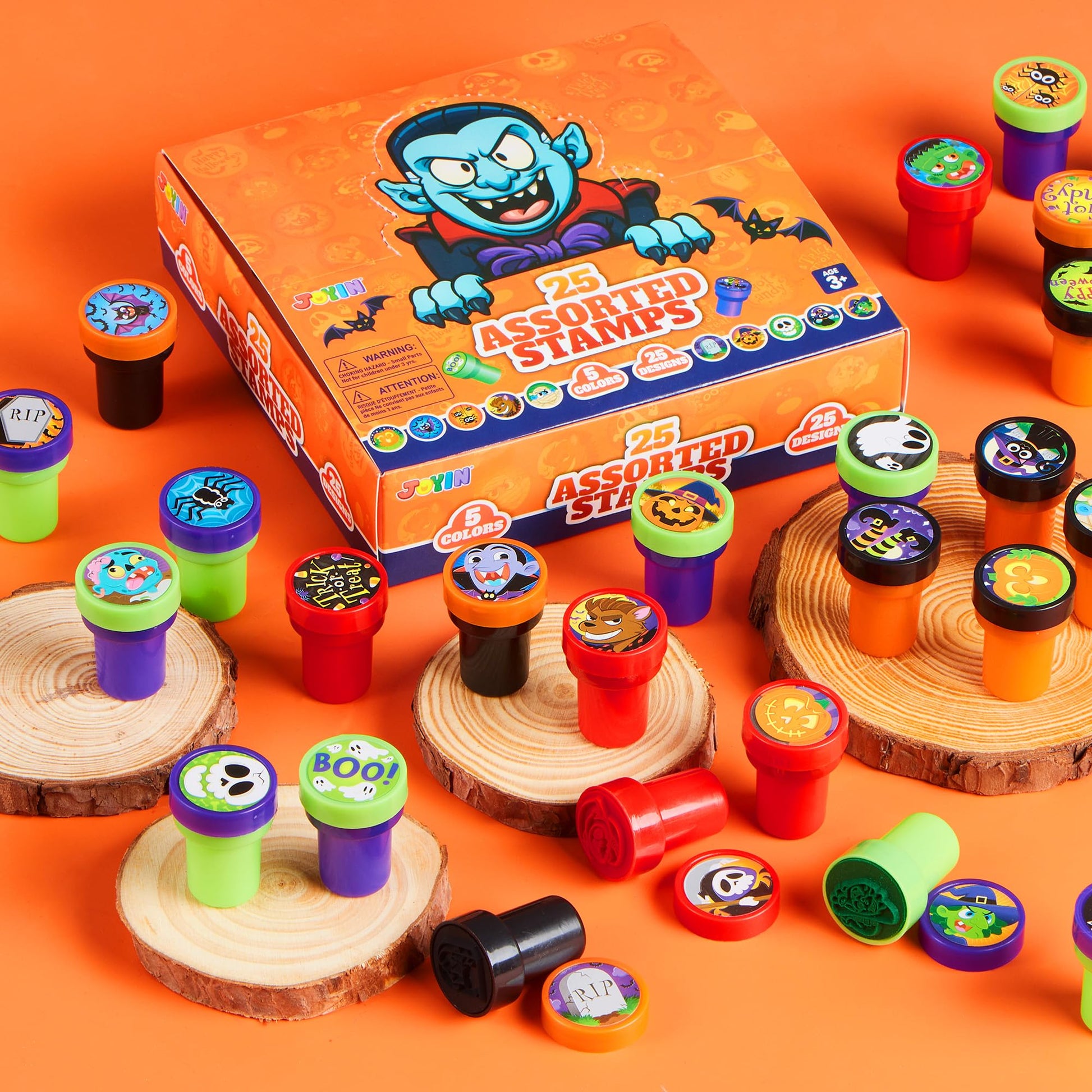 JOYIN 100 Pcs Halloween Stampers for Kids Gift, 25 Designs Assorted Plastic Stamps Bulk for Halloween Party Favors Goodie Bag Fillers, Teacher Student Stamps for Classroom Game Prizes