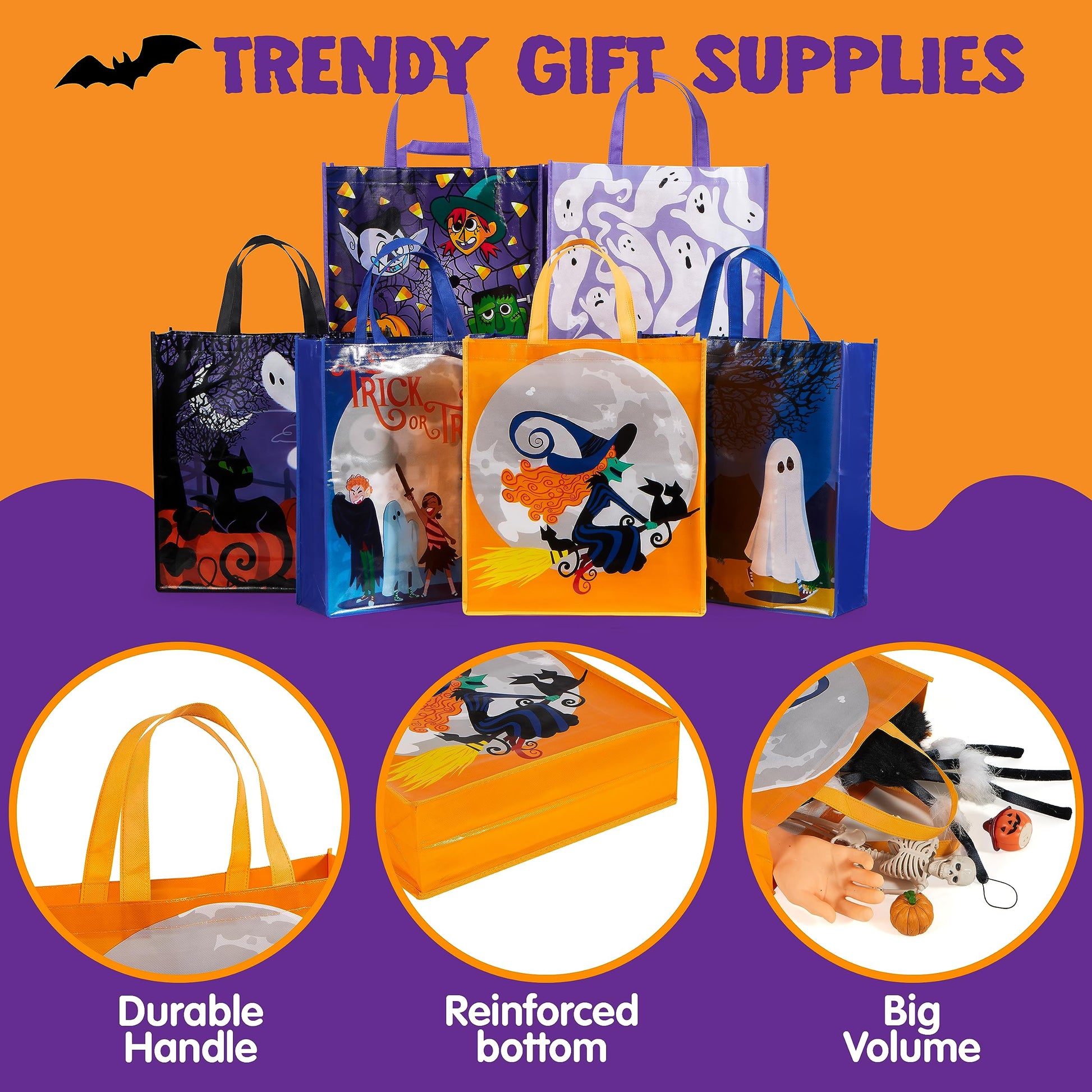 JOYIN 12PCS Halloween Large Treat Goody Tote Bags, 17” x 15” Halloween Candy Gift Bags Bulk, Goodie Snack Baggies for Kids Trick or Treating, School Classroom Gifts, Party Favor Supplies in 6 Designs