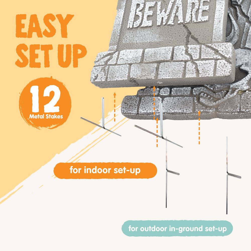 • Super Value Set: There are 5 different tombstones with 12 Metal Stakes included, each tombstones standing at a spooky 17 inches tall. It's a super value set that ensures you have everything you need to create a hauntingly unforgettable graveyard scene in your yard!