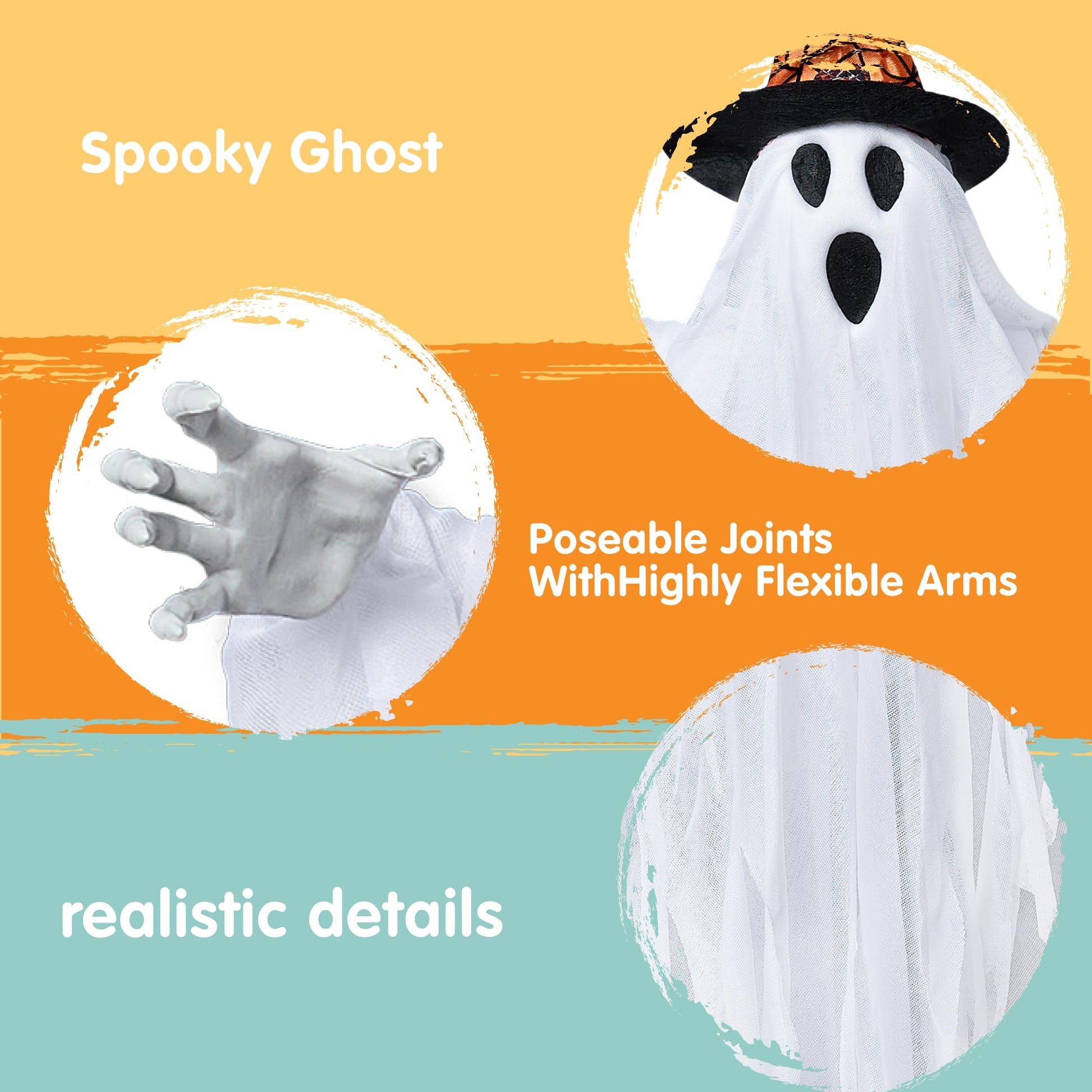 JOYIN 3 Pack 24.8" Halloween Hanging Ghost Decorations, Halloween White Flying Ghost with Hats for Haunted House Graveyard Scene, Spooky Indoor and Outdoor Decor