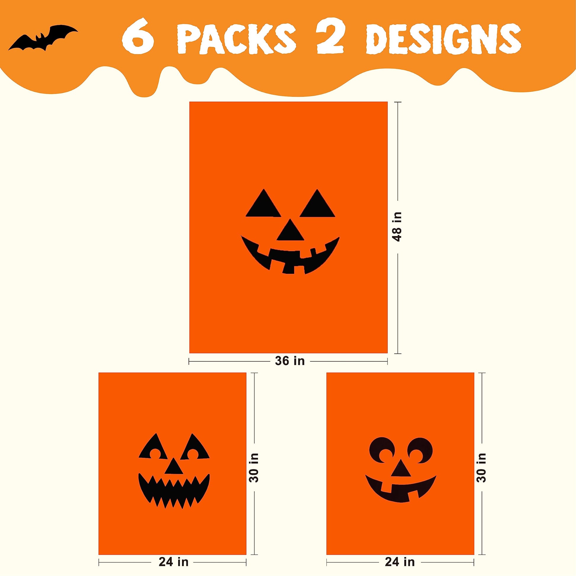 JOYIN 6 Pcs Halloween Pumpkin Leaf Bags, Plastic Lawn Bags for Yard Fall Leaf Halloween Decorations, Jack o' Lantern Reusable Trash Bag for Decor Party Favors, Party Supplies