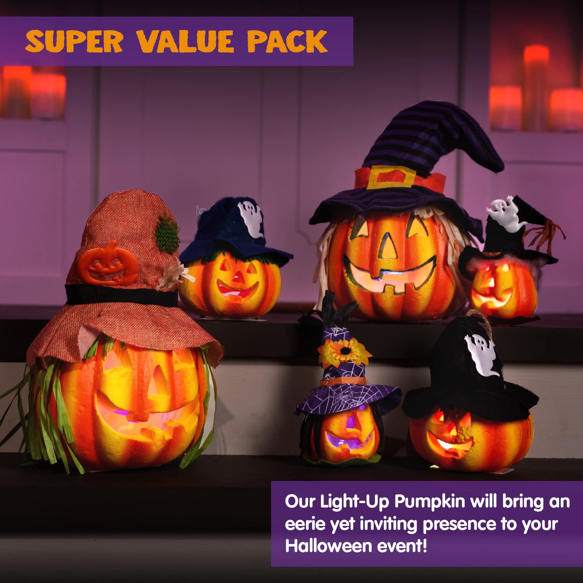 JOYIN 6 Pcs Light Up Pumpkins Halloween Decorations Outdoor Indoor Jack O Lanterns Decor LED Foam Home Large Trick Or Treat Bucket