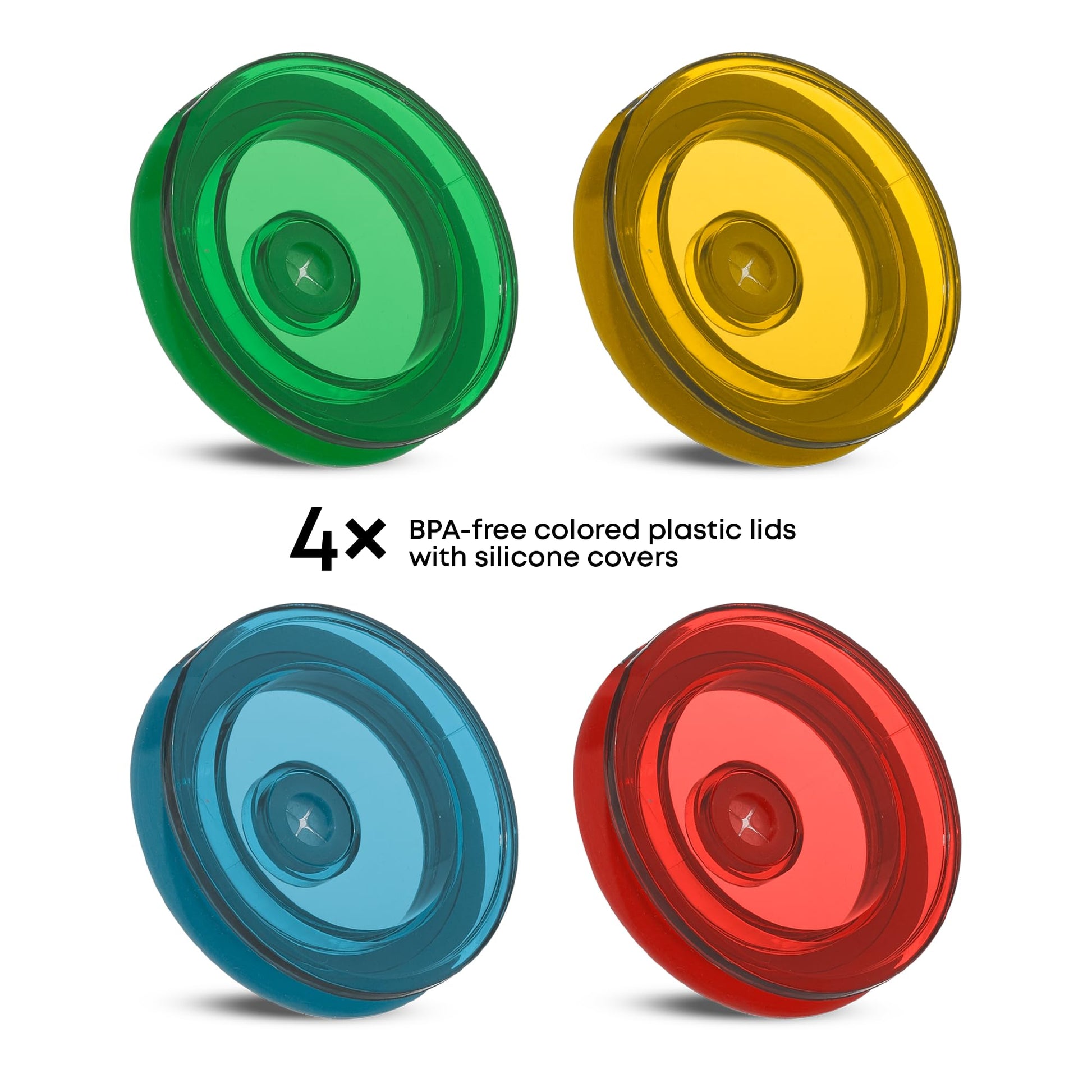 JoyJolt Harry Potter House Crests Glass Tumblers with Lids and Straws, 16oz Glass Cups with Lids and Straws, Can Shaped Drinking Glasses Set of 4, Hogwarts Cup, Harry Potter Merchandise