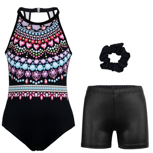 JOYSTREAM Gymnastics Leotards for Girls With Shorts Sparkly Ballet Dance Clasp Back Activewear Imitation Jewelry,10-11Years
