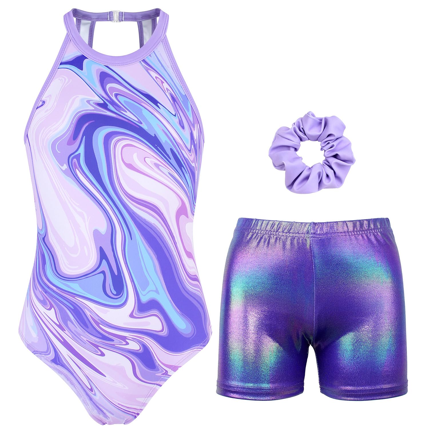 JOYSTREAM Gymnastics Leotards for Girls With Shorts Sparkly Ballet Dance Clasp Back Activewear Lavender Line,6-7Years