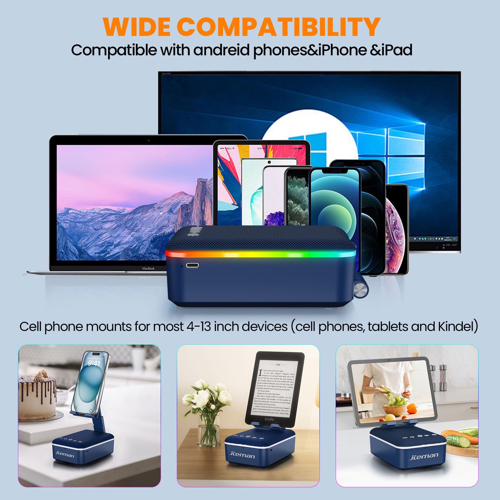 • Widely Compatible With Mobile Phones And Tablets: Adjustable cell phone holder is suitable for office desk, kitchen, table. It is versatile and compatible with a wide range of devices. The included USB A to C cable can be used as an AUX connection for your desktop computer or laptop, use it as a speaker for fast power supply and lossless audio transmission, it's the perfect gifts for men who want nothing.
