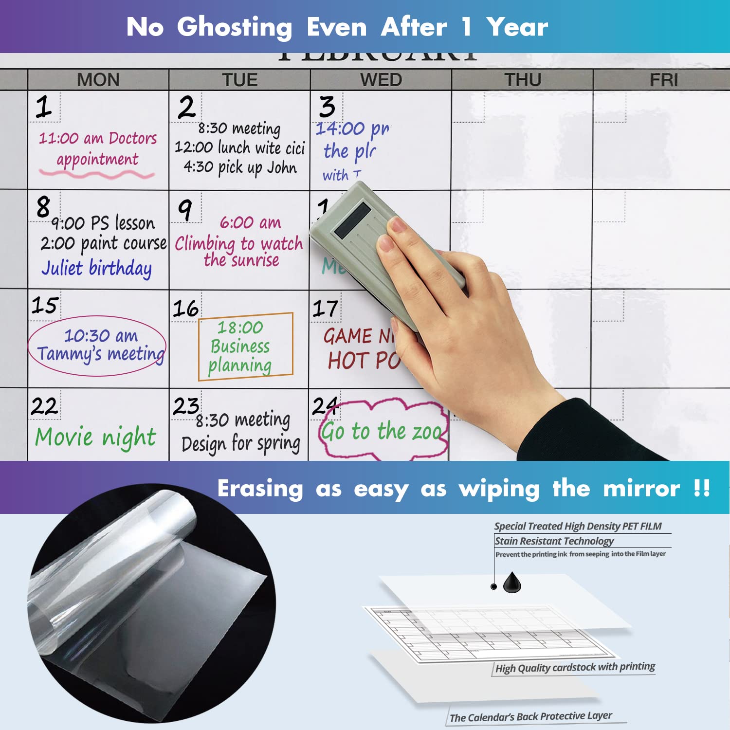 • 100% Erasable Guarantee - Special treated dry erase whiteboard sheet. We use specially treated film on the surface of our dry erase poster, which guarantee the surface is smooth enough and the writing can be wiped clearly. It cooperate well with all kinds of whiteboard marker, dry erase marker and chalkboard marker.