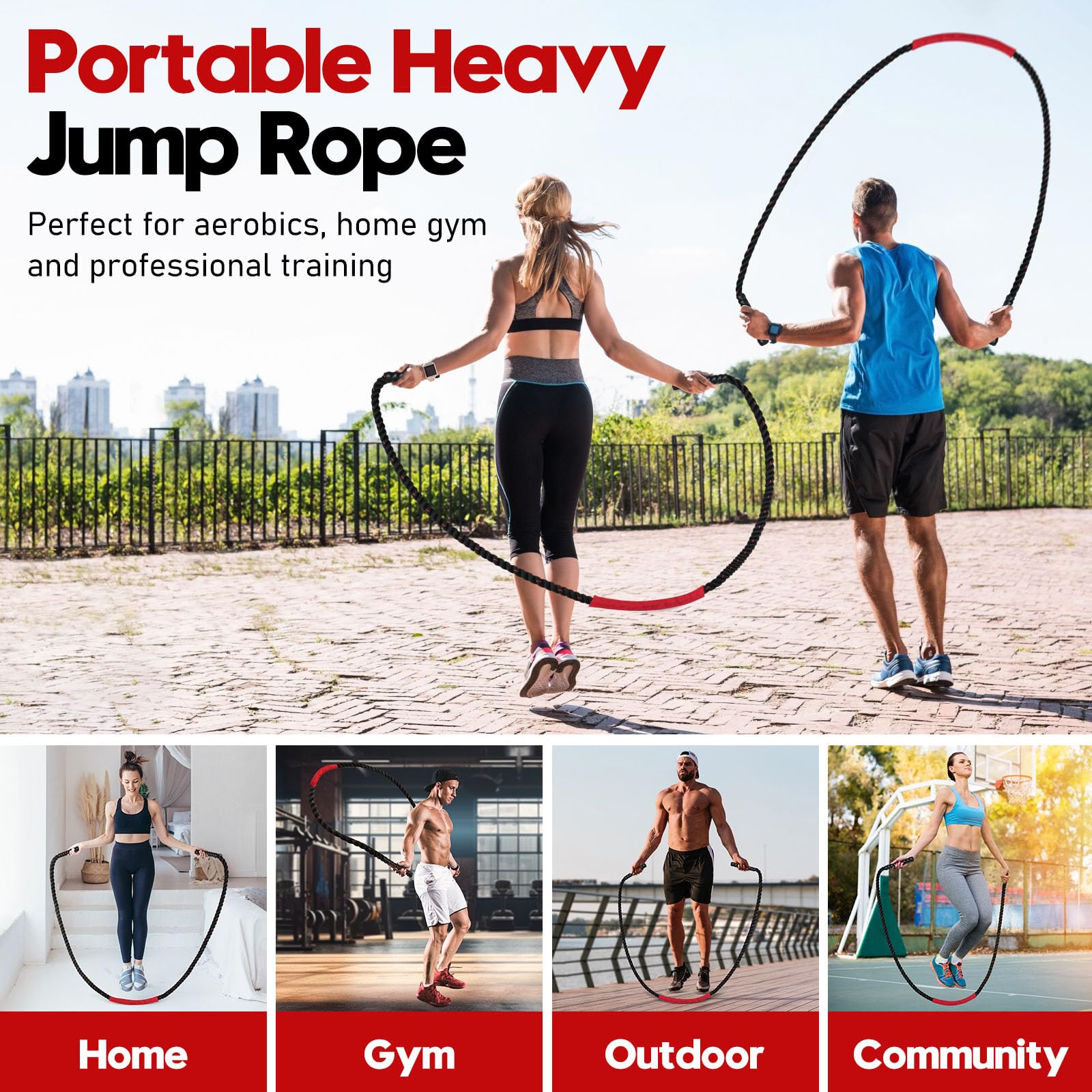 • Durable Material, Premium Quality: Our exercise skipping rope is made of polymer synthetic fiber with high tensile strength to prevent tearing during continuous use. Heavy-duty jump ropes are woven from multiple strands of fiber material and are designed to be heavy and durable, with reliable and long-lasting performance so you can focus on your workout.