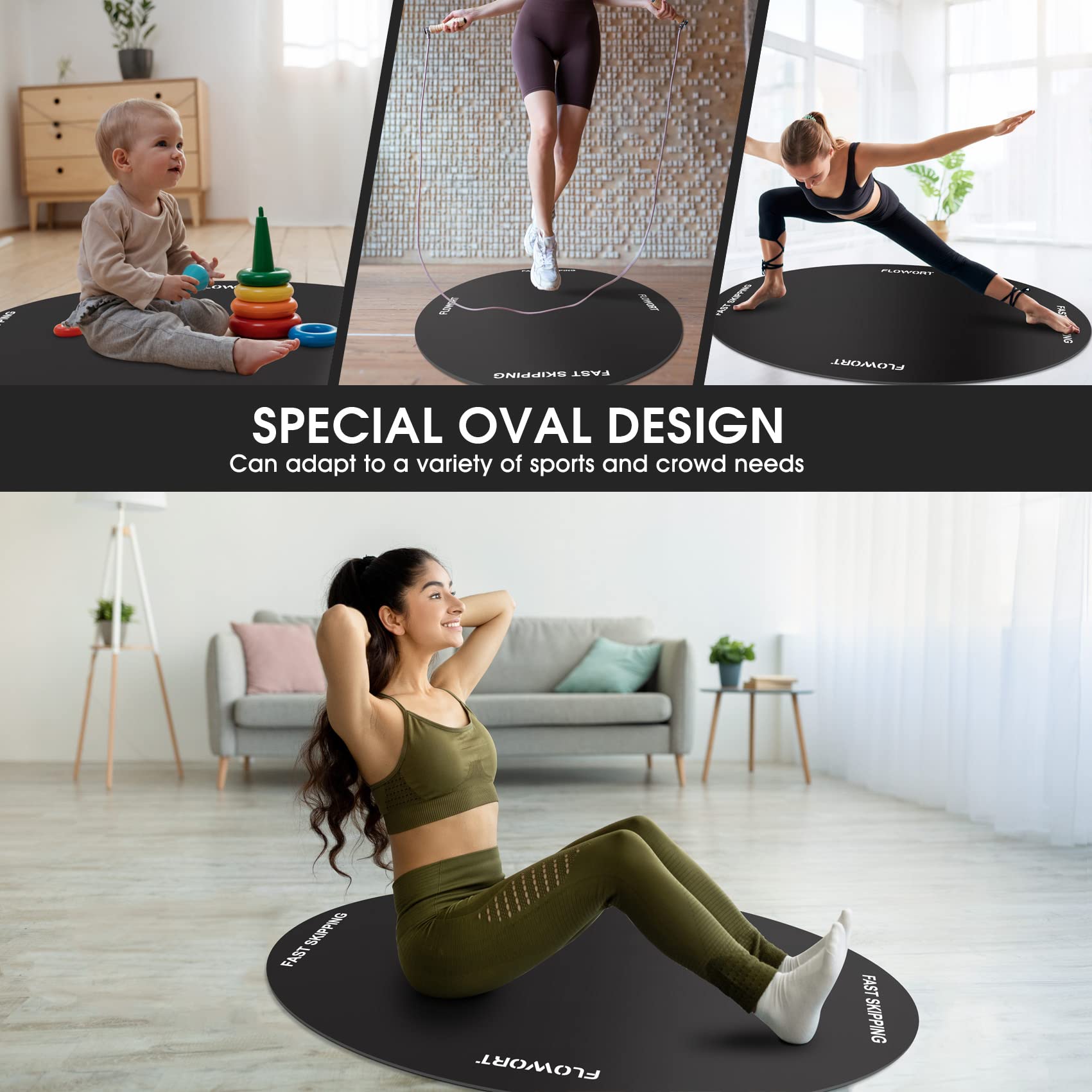 Jump Rope Mat,Large Rubber Exercise Indoor Outdoor,Shock Absorbing Mat Non-Slip Oval Design for Floor & Rope Protection, Workout Mats for Home Gym Flooring(Black)