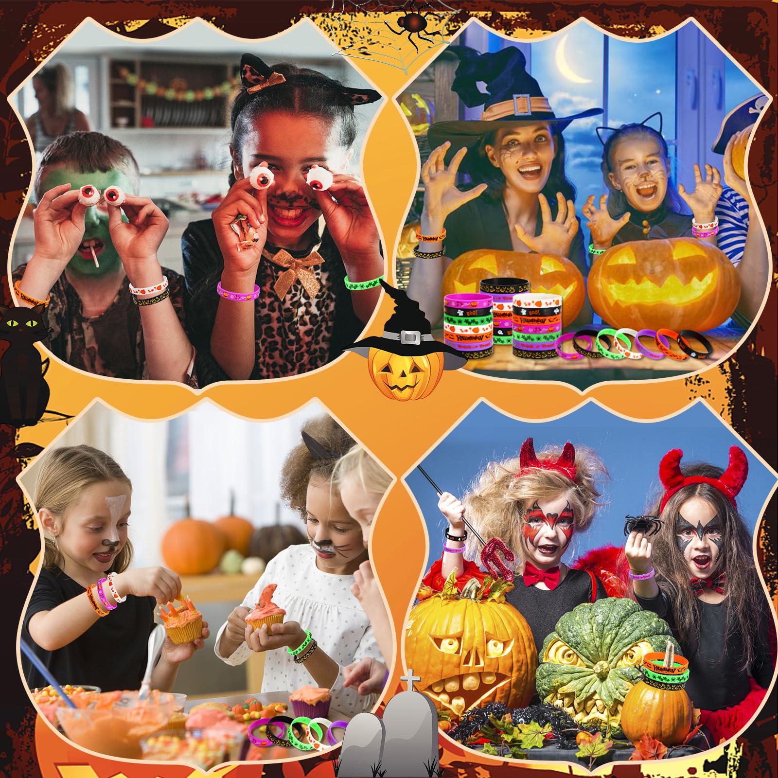 • 【Suitable Size】: Halloween silicone wristband is 8 inches long, 0.45 inches wide, and 2.56 inches in diameter. These bracelets for kids have good flexibility and durability. With bright colors and unique design, our Halloween party favors can help you stand out from the crowd