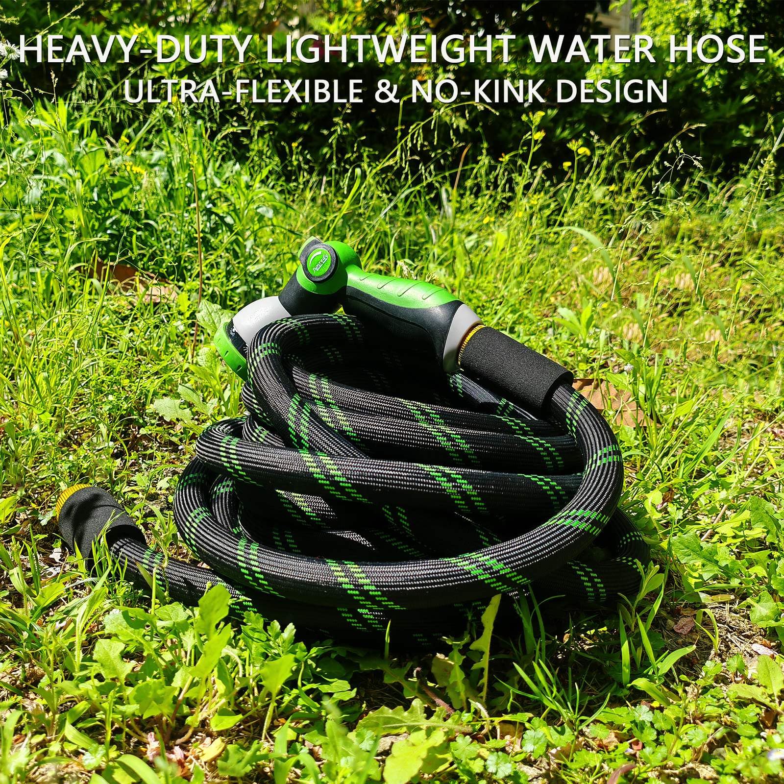 Junredy Garden Hose 25 FT, NON-EXPANDABLE Heavy-Duty Flexible & Lightweight Water Hose with 10-Function Nozzle, No-Kink Design, Leak-Proof Super Fabric, Solid Fittings for Lawn, Car, RV, Outdoor