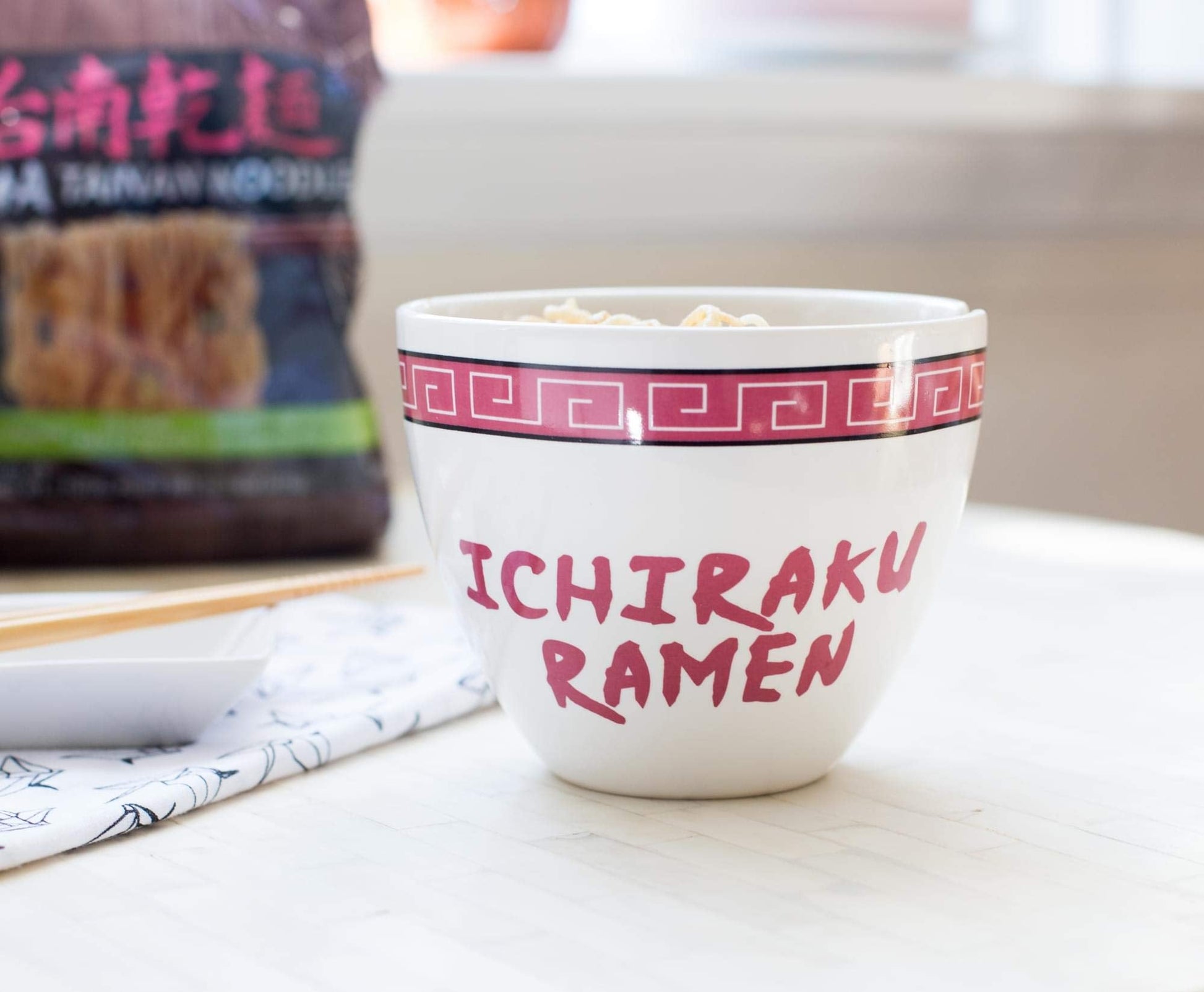 • Fun Design: Ramen set features a design inspired by Naruto Uzumaki's favorite restaurant, Ramen Ichiraku. Detailed with a red and white color scheme, the ceramic bowl features the name of the ramen restaurant and has a built-in chopstick holder.