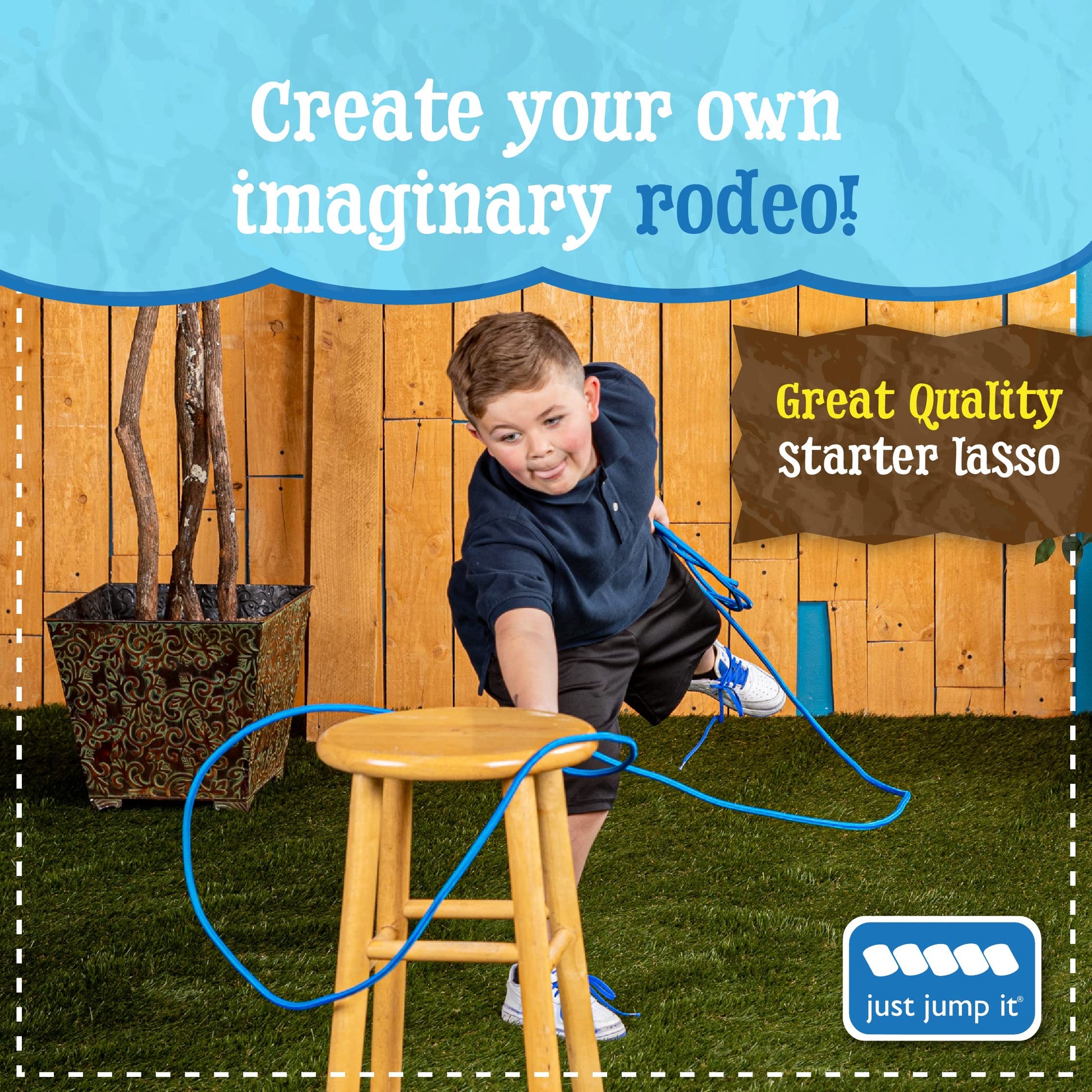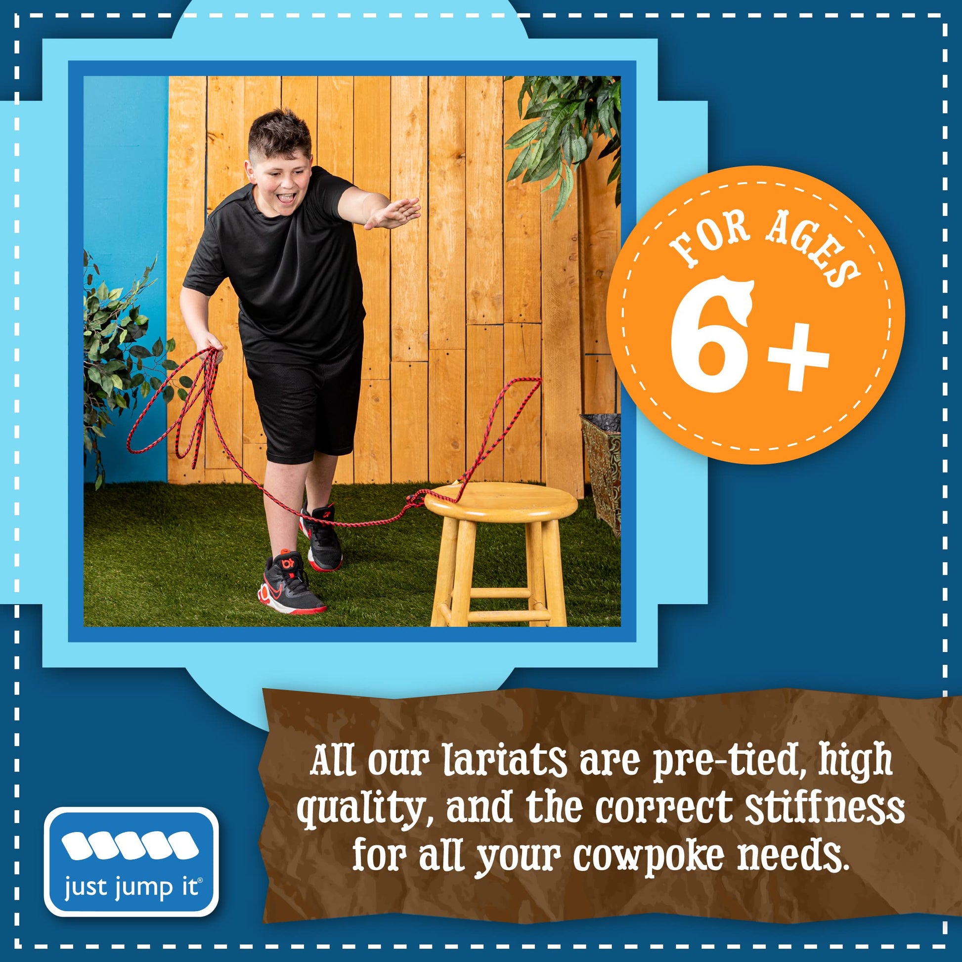 • JUST JUMP IT PRESENTS: Master the art of the lasso with our junior-sized Lariat. Don't let the colorful sheath fool you, this pre-tied lariat is made with the correct stiffness and is the real McCoy.
