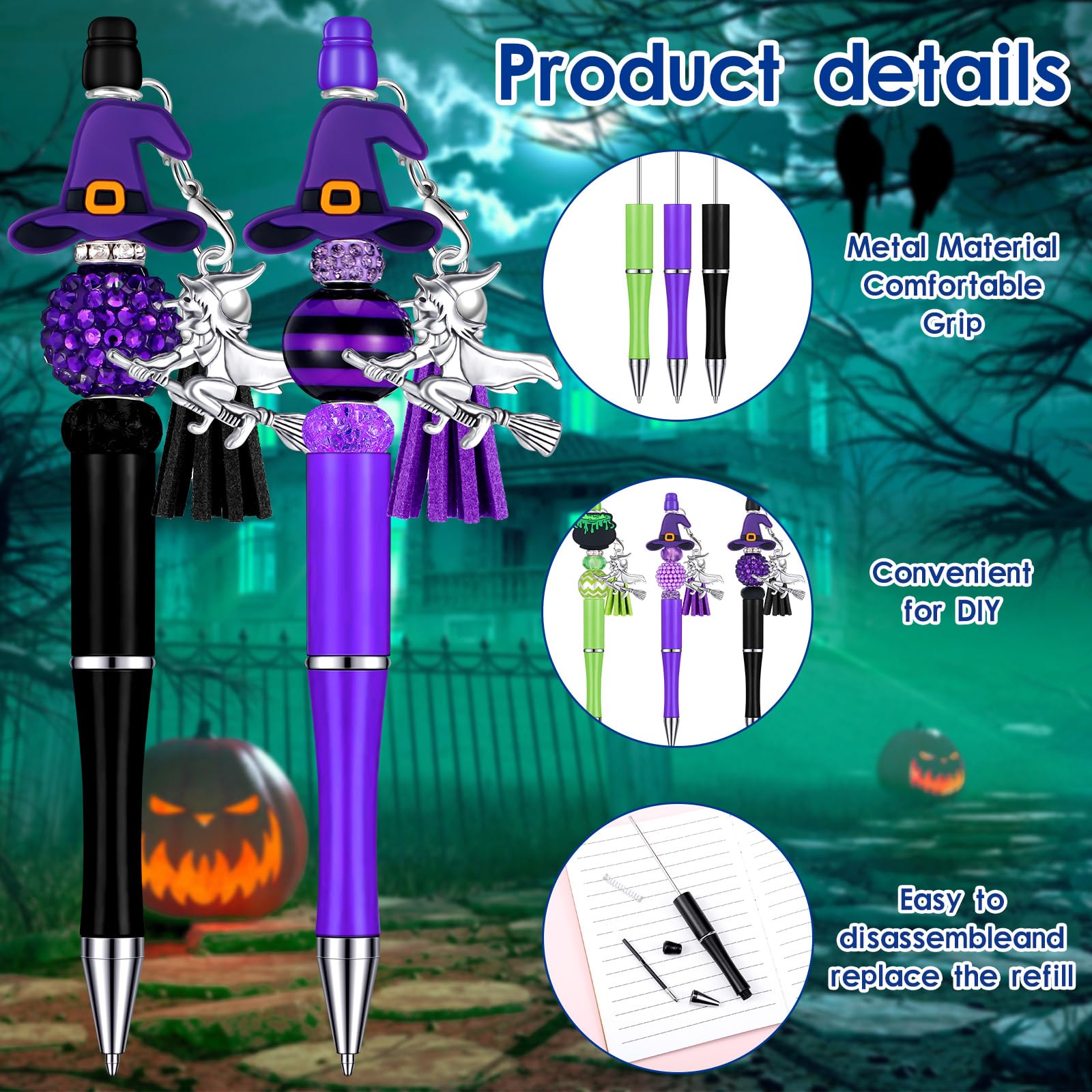 • Halloween Style Pens: there will be 12 pieces of Halloween beadable pens, including 6 green beaded pens and 6 purple beaded pens, 12 pieces of tassels, 12 clip rings, 30 big beads and 20 small beads and 12 cap pendants; Abundant quantity will meet your daily use and replacement demands