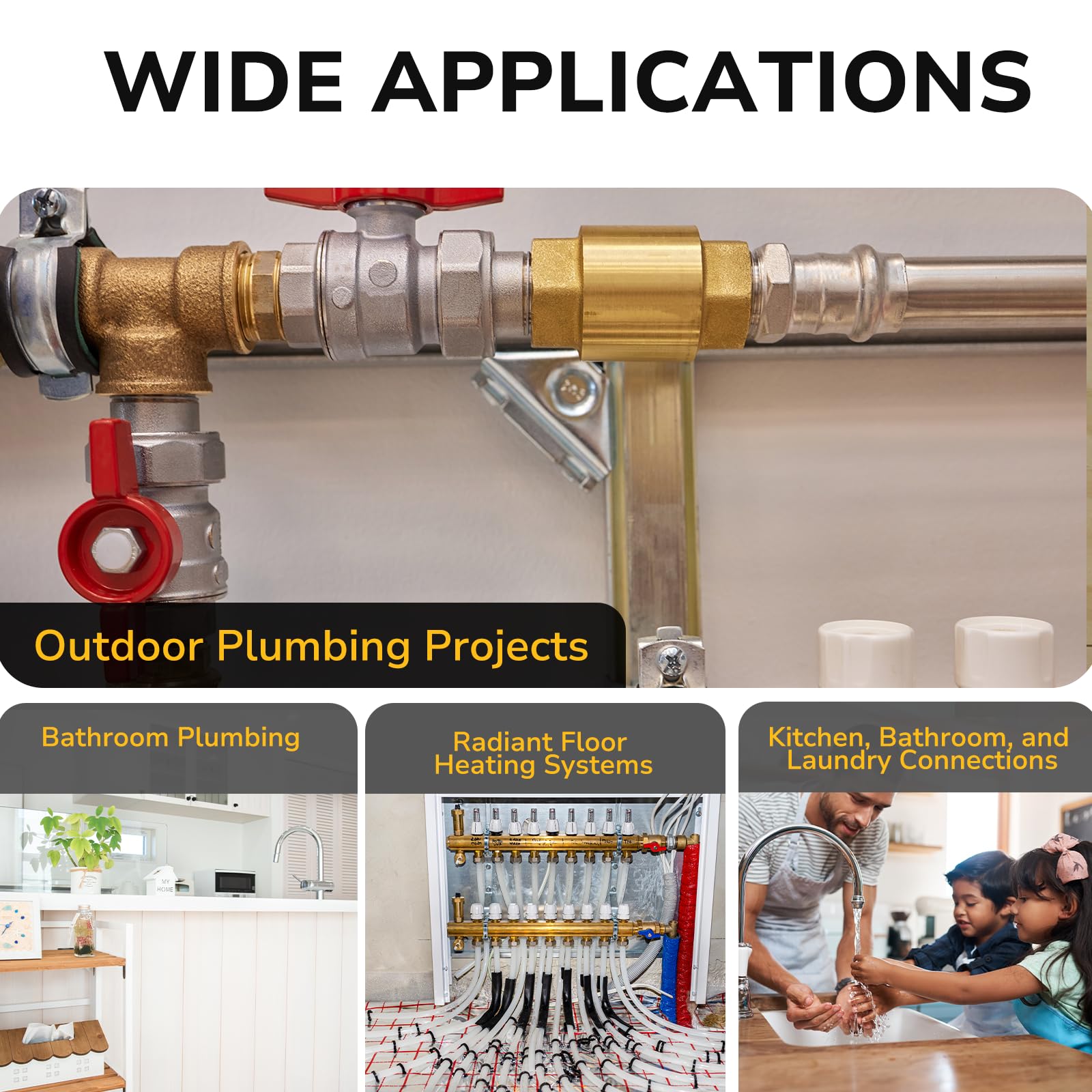 • Safe & Certified: Made from lead-free brass, these PEX fittings are UPC and NSF certified, meeting all plumbing standards for potable water systems They ensure long-lasting durability while maintaining water safety and compliance with plumbing code
