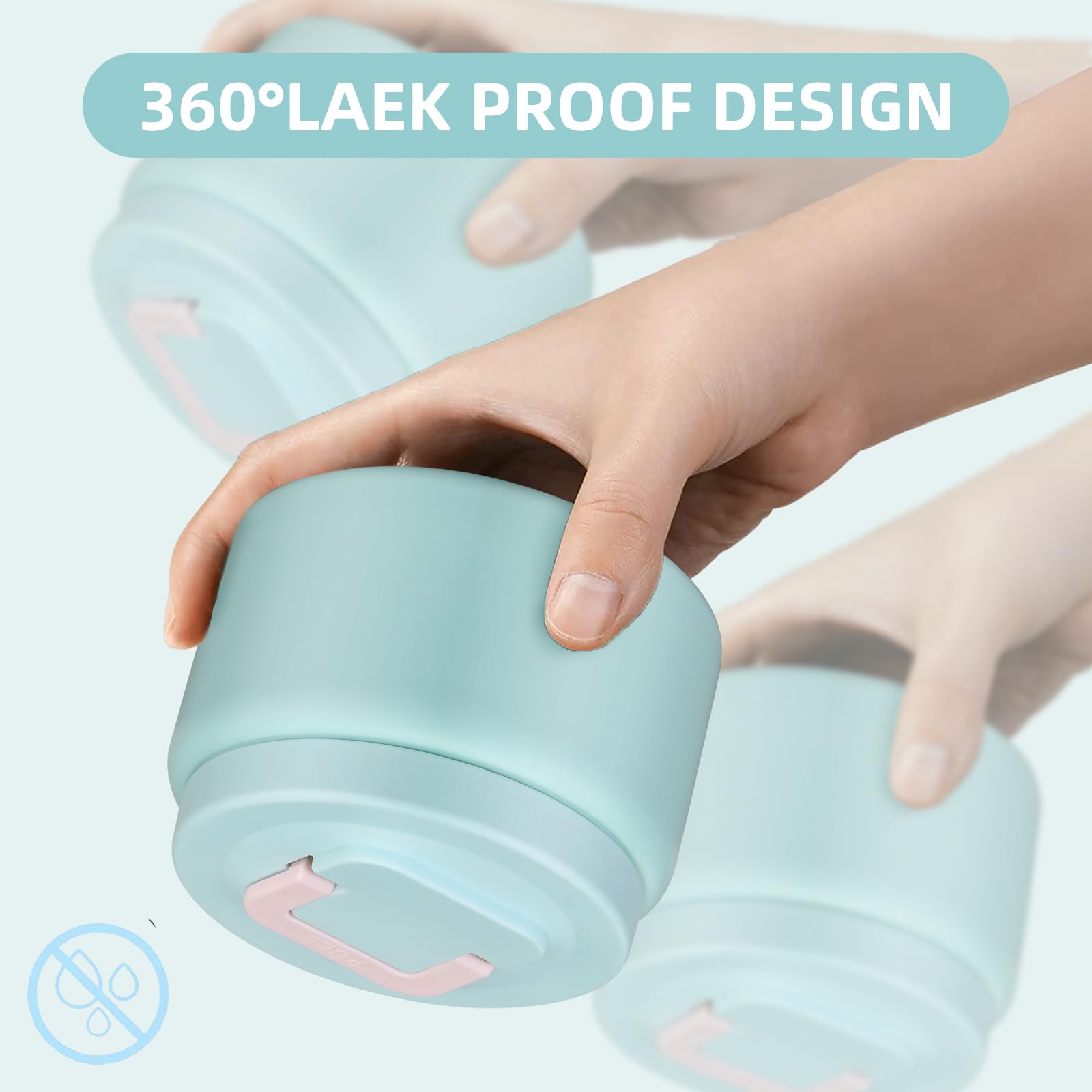 • 🚫 Leak-proof silicone gasket: our thermo bottle is equipped with a silicone rubber ring and gasket. It is completely sealed for pasta, hot soup, milkshake, salad, and other foods. Make your life very convenient. This light and small food can are 3.2 inches deep and 1 cup (8 ounces/240 ml).