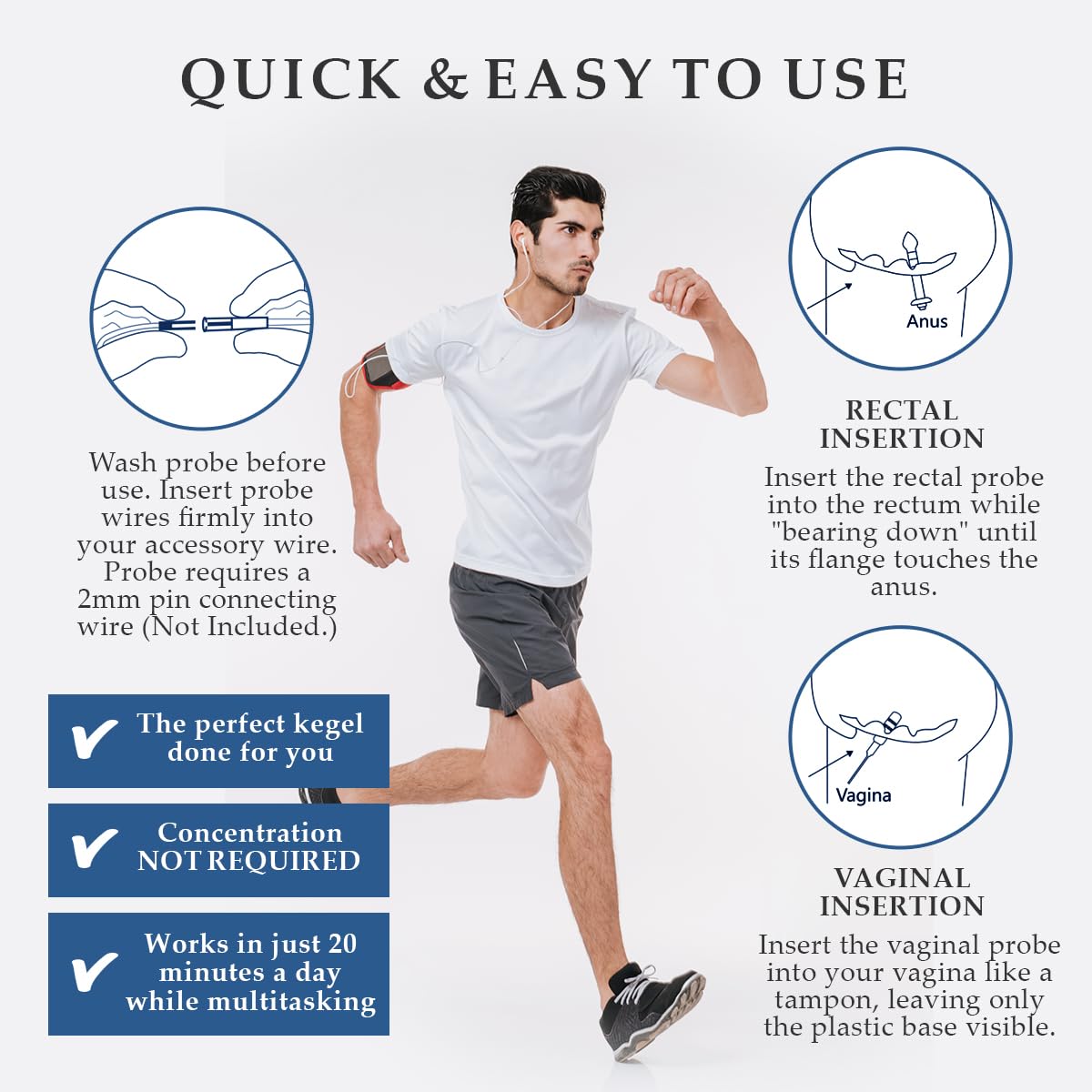 • * AUTOMATED KEGEL EXERCISES - K-Fit electrode probes directly stimulate your pelvic floor muscles, effortlessly performing kegel exercises for you. This advanced method not only helps in reducing incontinence in both men and women but also enhances muscular function without any manual effort.