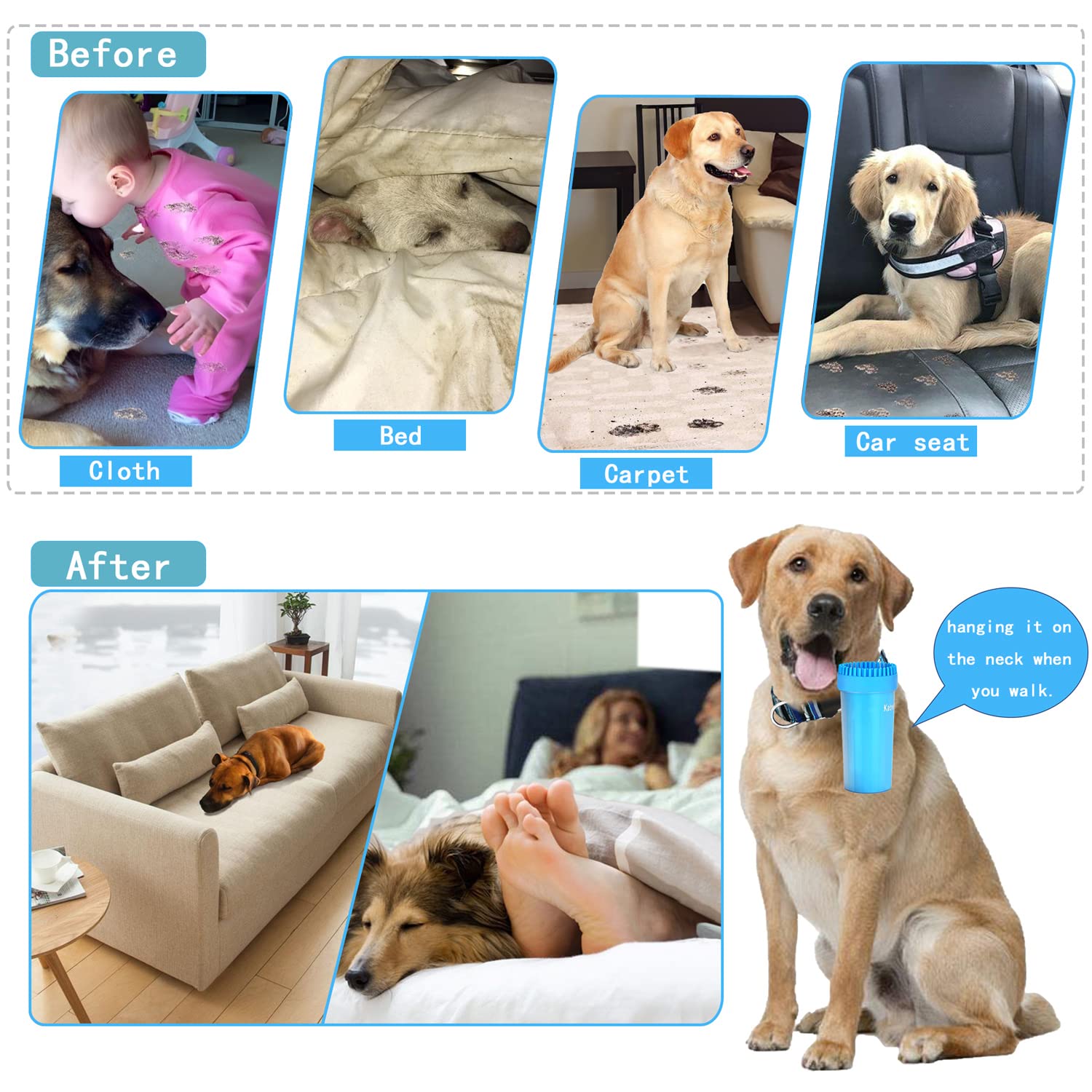 【Portable and Lightweight Paw Cleaner】 Perfectly sized for small/medium breed dogs, it's easy to carry and conveniently fits by your front or back door. Whether you're out for a walk, hike, or simply coming home, this paw washer is your pet's ideal companion. Consider hanging it around your pet's neck for added convenience.