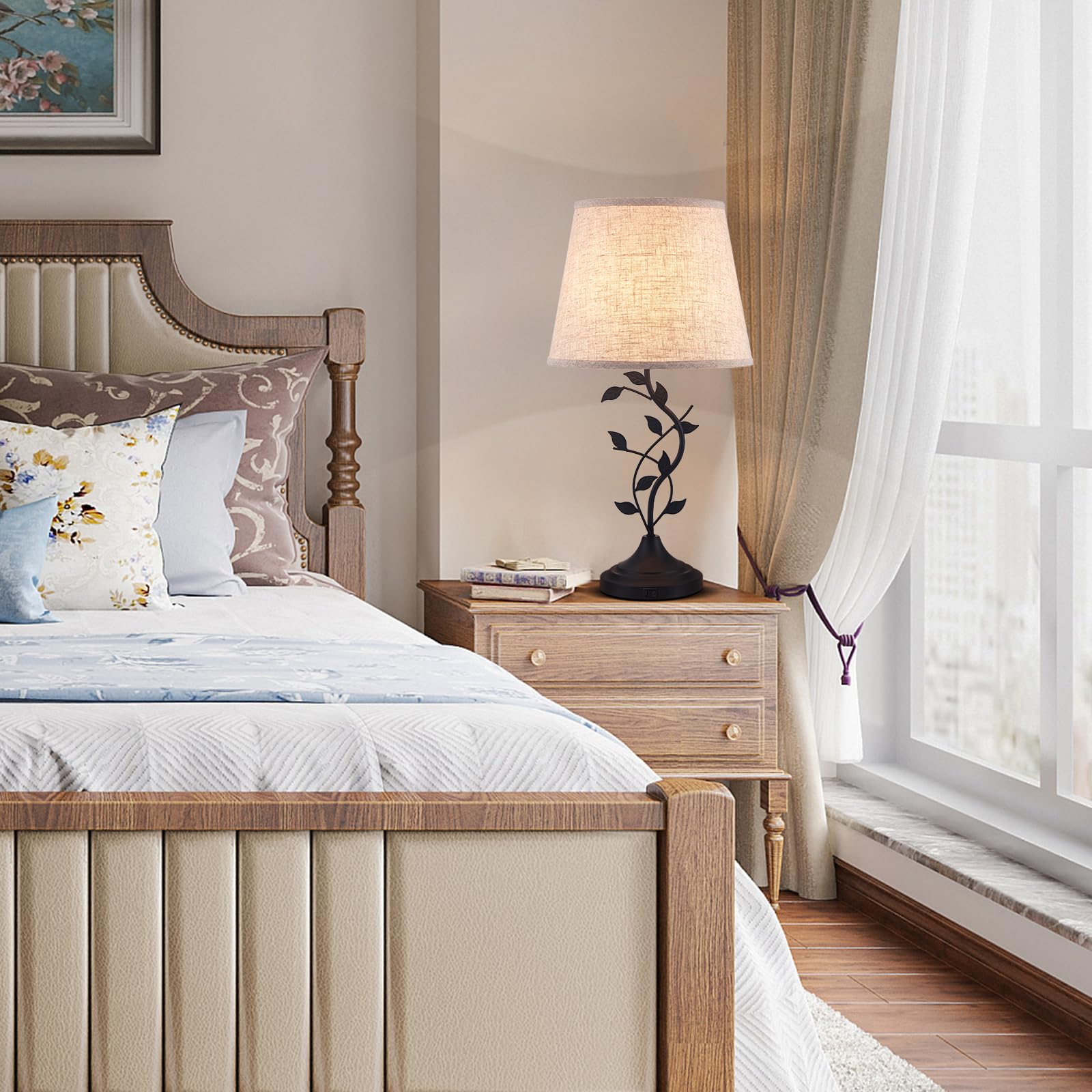 • Vintage Table Bedside Lamp - The unique design of the tree branch leaves base and beige lampshade creates a subtle sense of harmony, present a retro and elegant appearance. Suitable for any decoration scheme, such as urban, modern, casual, retro or traditional, and it can add high-end feel and elegant touch to any room, which enhance the taste of the space. It is the perfect choice for decorating any beautiful house.