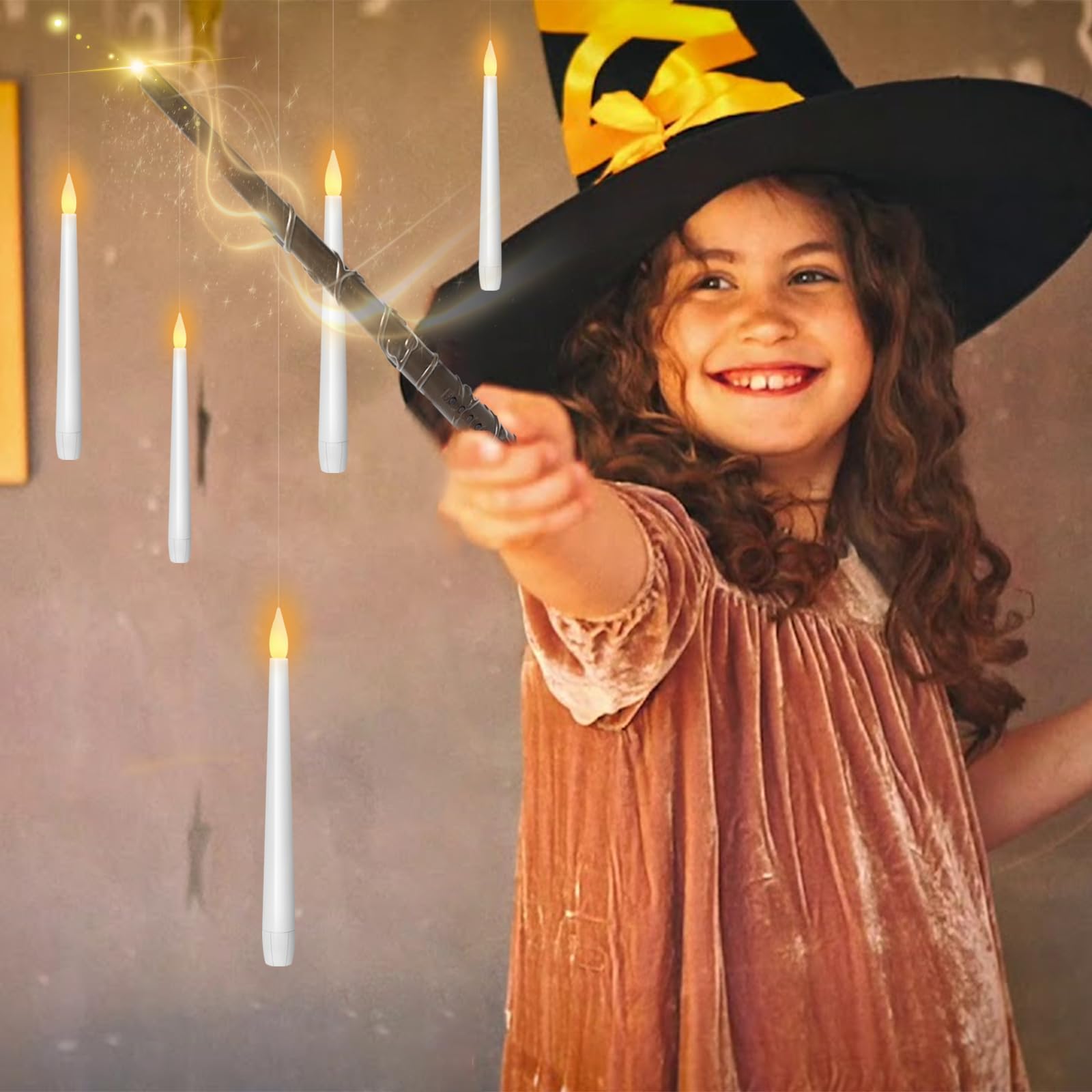 • 【Magical Floating Design】:Each flameless taper candle in this set is ingeniously designed to appear as if it's floating, adding a magical touch to your Halloween decorations. When hung or placed in the desired locations, the illusion of floating candles is created, evoking a magical and mystical atmosphere.