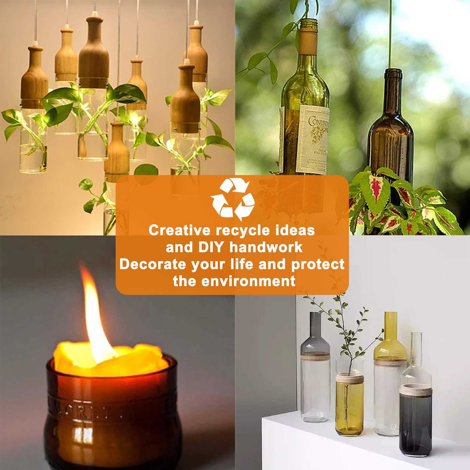 • 【Diy Creativity & Environmental Protection】- With glass bottle cutter you can create easily creative decorations, such as vases, candle holders, aroma lampshade etc. This will enhance your creative thinking and artistic sense. While decorating your unique and beautiful life, at the same time avoiding the pollution of the environment by refractory glass bottles. Thank you for your contribution to the environment