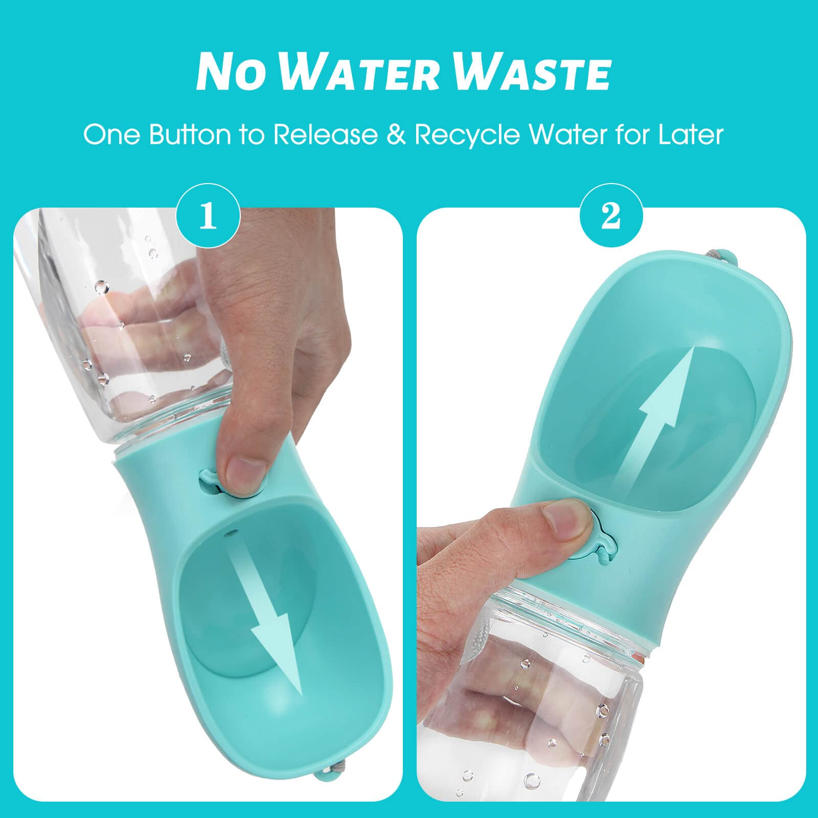 • 【BIG TROUGH & RECOVER UNUSED WATER】➊ This dog cat travel water cup bowl has 2.8 inches Big Trough. It not only ensure dog drinking water easily but also cat, rabbit or other small pet to drinking water quickly, moreover doesn't Wet Your Dog. ➋ In addition, a most important and different point is that puppy bowl press button to re-collect the remaining water and use it again. Protect water resources without wasting a drop of water.