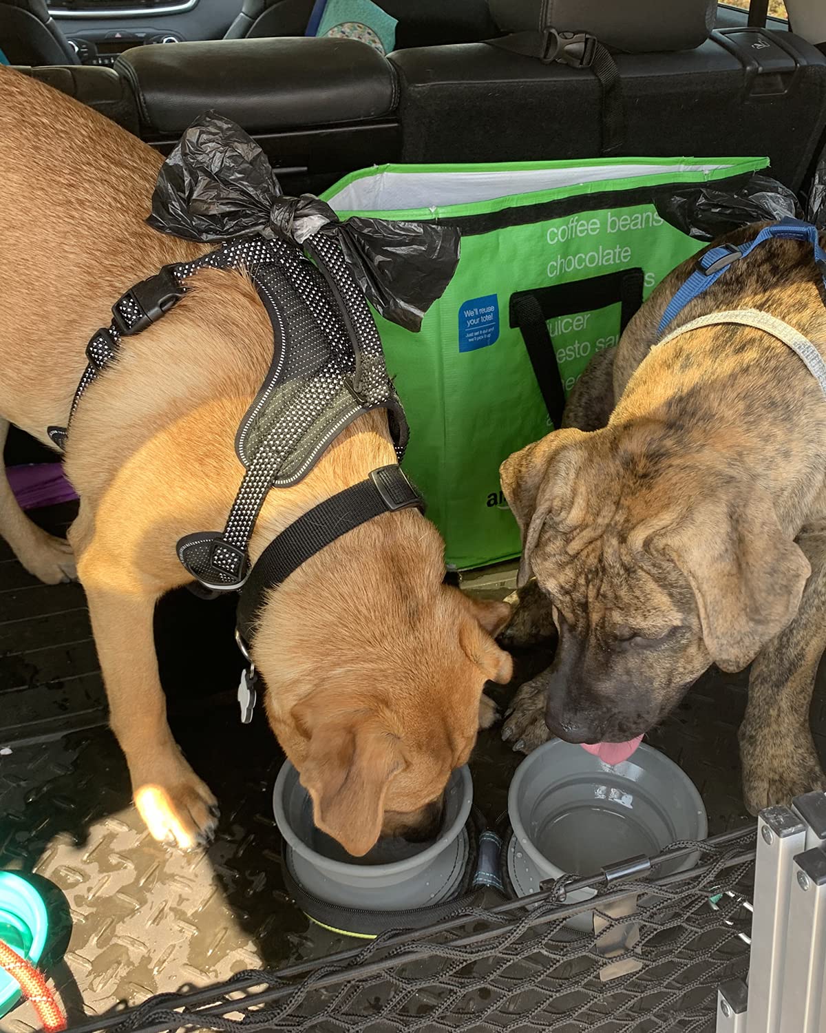• 【Portable】When not in use, folds double dog bowls completely flat, the travel dog bowls can be zipped up into a compact sized carrying case, saving space – Great dog travel essentials to throw in the car or backpack.