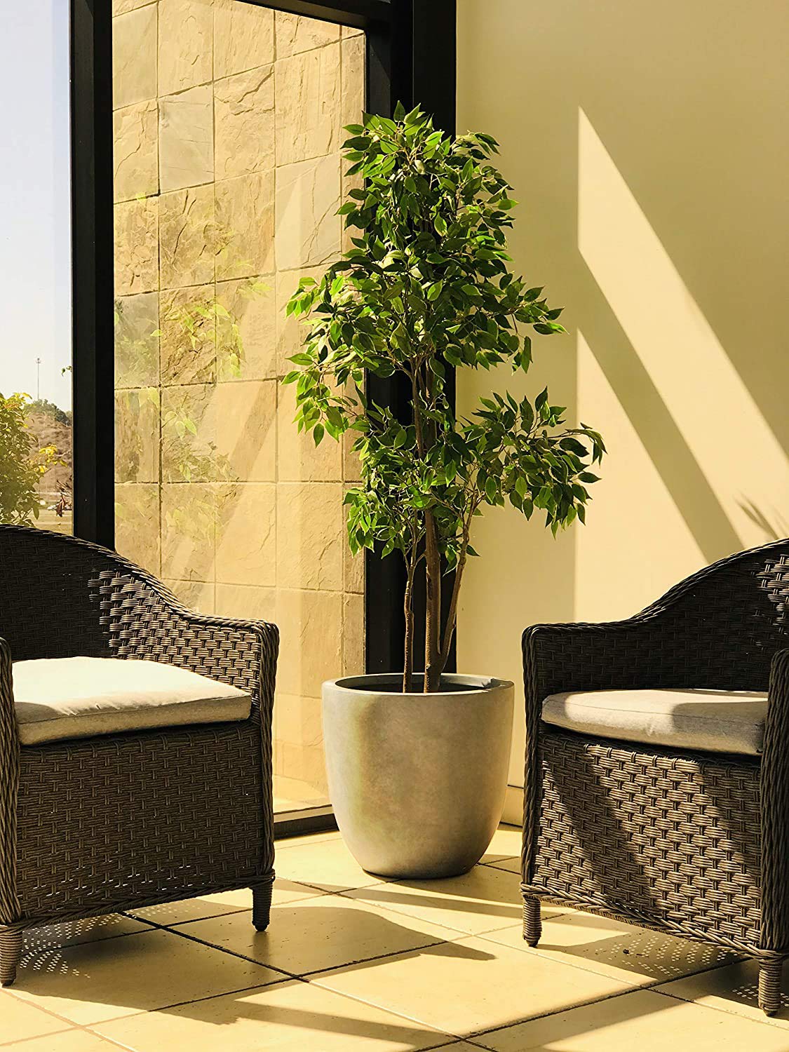 Details: These elegant round planters have authentic concrete finish with visible pores make them beautiful contemporary pieces. The look and feel is true concrete but it weights substantially less than it looks. It also has a very smooth finish instead of rough concrete potters you might be used to. The size is very generous and can hold a good amount of plants without looking crowded. Would look great on an apartment balcony or large backyard patio. The smooth lines and round shape of these planters will help you maintain a modern design throughout your space. You can’t go wrong with the grey finish as it blends well with any décor. They can be used individually, as a set or in a row to promote unity. Made of Lightweight concrete through an manufacturing process. This composite material has no ruber, plastic, and steel. This material has all the advantages of concrete such as strength, durability, weather and damage resistance. Materials involve cement and weather-resistant fiberglass. This material has strong UV resistant ability and stay well in wind, rain, hot and cold season. By adding fiberclay material, planter is much easier to move around due to its lighter weight.